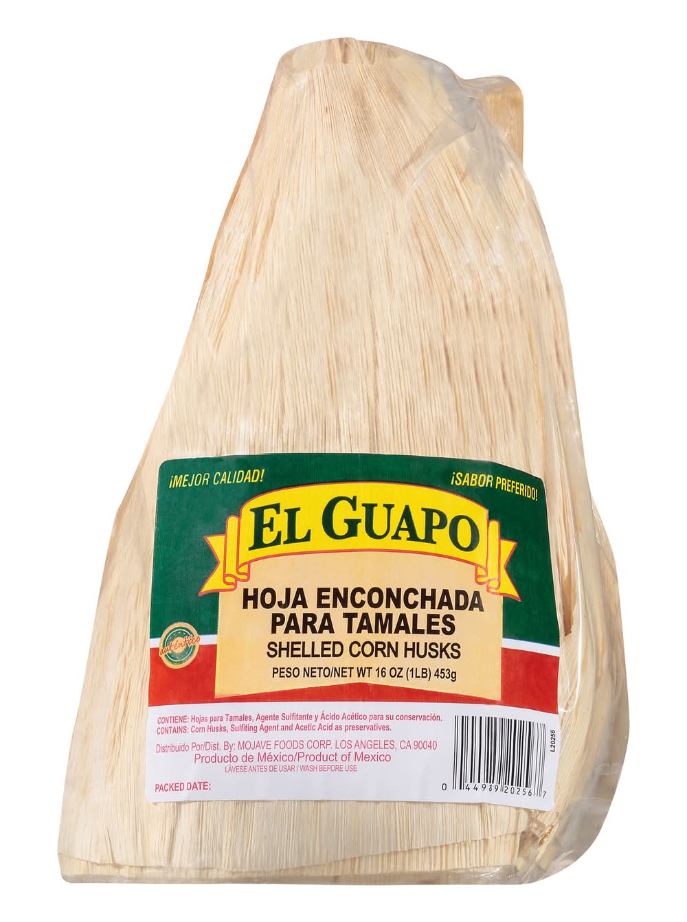 Corn Husks (Hoja Para Tamales) are dried husks used for wrapping tamales before steaming. Make delicious savory or sweet tamales for your family and friends with El Guapo® Corn Husks. Mojave Foods Corp., Los Angles, CA, 90040