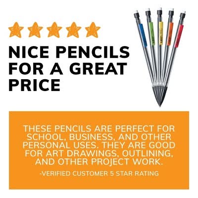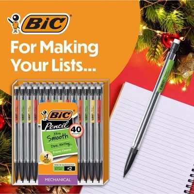 Experience smooth, dark writing with BIC Xtra-Smooth No. 2 Mechanical Pencils with Erasers. These mechanical pencils have a medium point that’s ideal for a variety of everyday writing activities. They’re excellent mechanical pencils for school and come equipped with three pieces of No. 2 lead that’s compatible with most standardized tests. The high-quality lead in these BIC pencils doesn’t smudge and erases cleanly, so your work looks neat and professional. Convenient and reliable, these Pencils are always ready and never need sharpening; to advance the pencil lead, simply click the built-in eraser. These BIC mechanical pencils have a sophisticated, modern look, and their colorful clips easily attach to pockets, notebooks and more. The No. 1 selling mechanical pencil brand in the United States*, BIC offers dependable performance and value that you can trust. Looking for larger quantities of school or office supplies? This pencils bulk pack will keep your desk stocked all year. Choose these Pencils With Erasers for a high-quality, safe and affordable product you can trust. • Color: Multicolor • Size: 0.7 mm