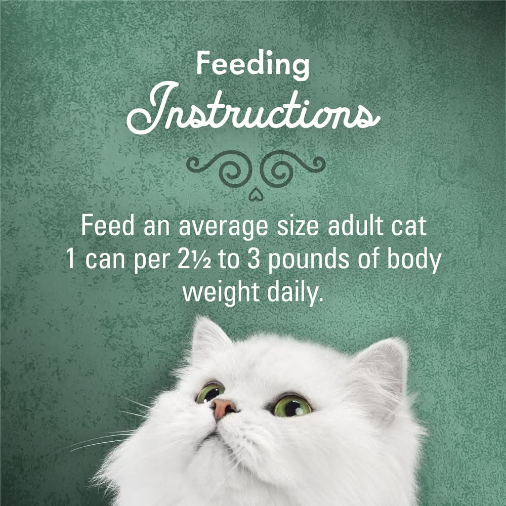 Directions for use: Refrigerate unused portion. Feed an average size adult cat 1 can per 2-1/2 to 3 pounds of body weight daily. Storage recommendation: Refrigerate unused portion.