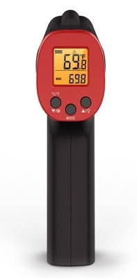 Measure highly accurate surface temperatures. With a 12:1 DISTANCE SPOT RATIO, farther away the target, larger the test spot area will become. This IR thermometer gun has an adjustable emissivity setting (0.1 to 1.0) which makes this thermal leak detector optimal for measuring the temperature of any object or material. A built-in laser pointer allows for maximum accuracy when aiming at targets.