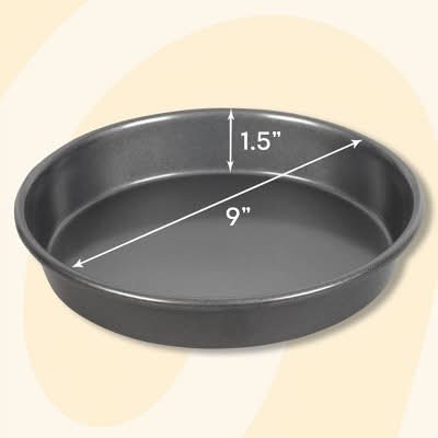 Make near-perfect layer cakes with this non-stick round cake pan. Round pan is also ideal for baking cinnamon rolls and even cheesecake. Heavyweight steel construction helps to prevent warping, promotes even-baking and will last through many years. Safe for use with metal tools. Dishwasher safe for quick and easy clean-up. Size: 9"