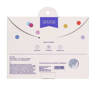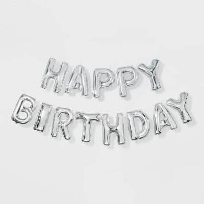 Take birthday celebrations to the next level with this "Happy Birthday" Foil Balloon Set from Spritz. This foil balloon set includes 13 silver balloons that spell out "Happy Birthday," providing a fun party backdrop for your next birthday party. The set comes with an included string and inflating straw for easy use, and it pairs easily with the rest of your party decorations. Simply pair with coordinating latex balloons and add complementary streamers for the complete celebratory vibe. Color: Silver