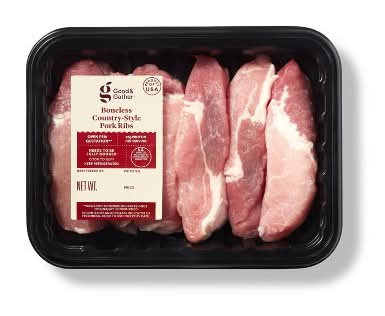 Cook up a delicious main course for backyard barbecues or dinner parties with these Boneless Country-Style Pork Ribs from Good & Gather™. These delicious ribs are priced per pound and need to be fully cooked to 160 degrees. Great for grilling and slathering with barbecue sauce or roasting in the oven, they also contain 23 grams of protein per serving. Every product that carries the Good & Gather™ name starts with quality ingredients that deliver great taste, making it easier for you and your family to eat well every day. We promise you’ll love each bite or your money back.
