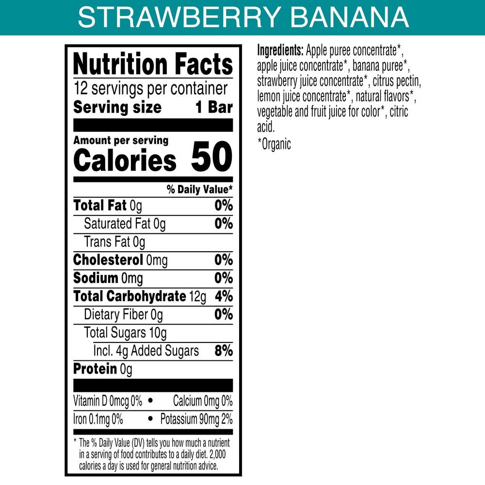 Ingredients: Apple Puree Concentrate*, Apple Juice Concentrate*, Banana Puree*, Strawberry Juice Concentrate*, Citrus Pectin, Lemon Juice Concentrate*, Natural Flavors*, Vegetable And Fruit Juice For Color*, Citric Acid. *Organic