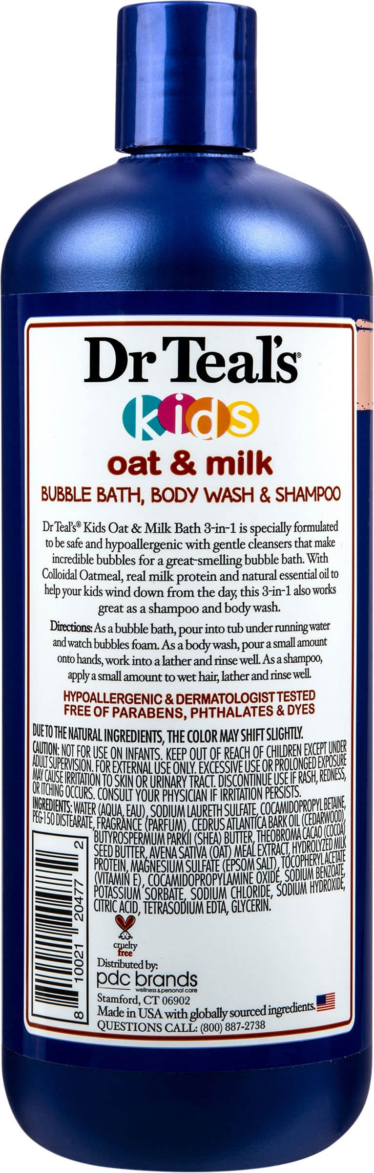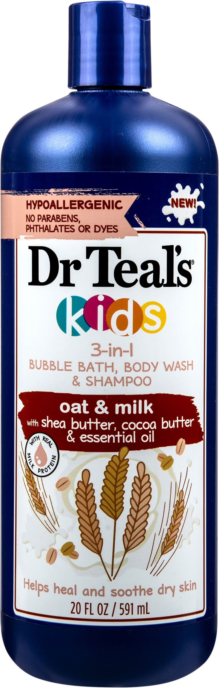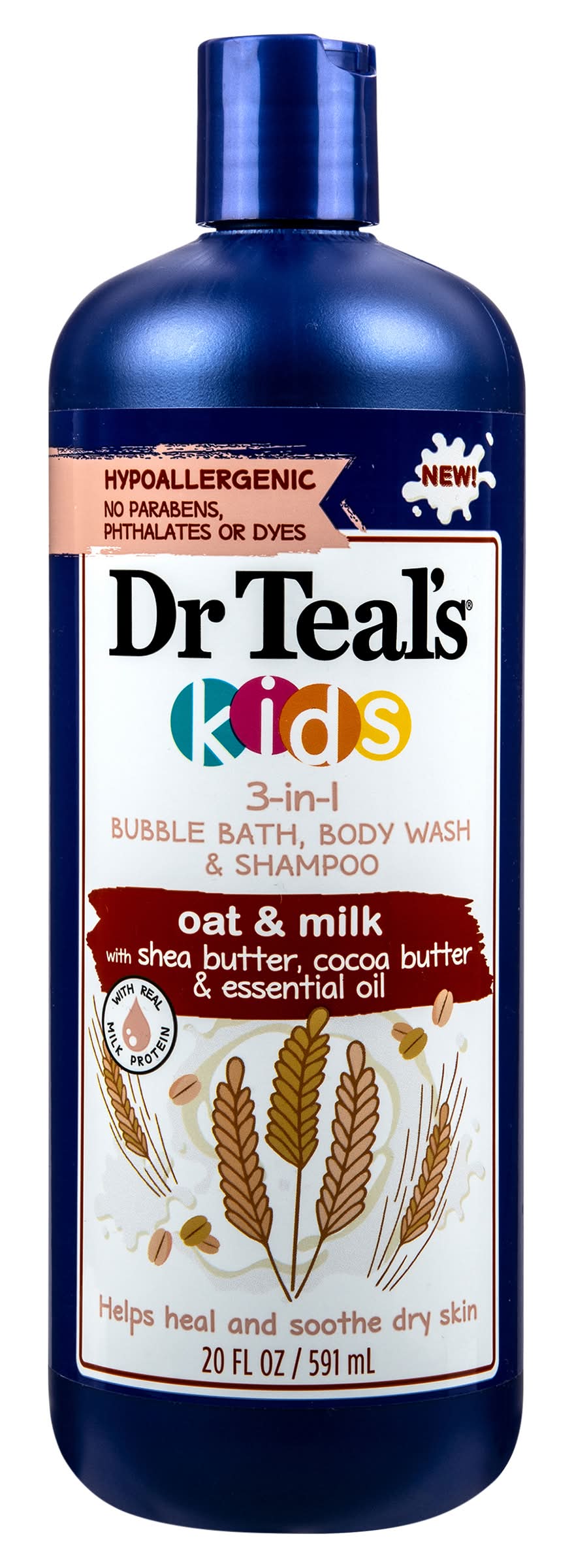 Dr Teal's Kids 3 in 1 Bubble Bath Body Wash and Shampoo, Oat & Milk (20 oz)