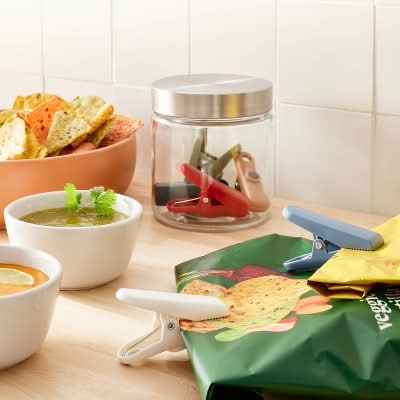 Help keep your snacks and cooking supplies fresh and secure with this 6-Piece Magnetic Bag Clip Set from Figmint™. Made from plastic, these bag clips are designed with powerful magnets that let you display recipes, reminders or drawings on your fridge or other metal surfaces. Plus, the six different colors give you the option of color-coding to help keep your kitchen organized. Figmint™: Mixing up a taste of adventure everyday.