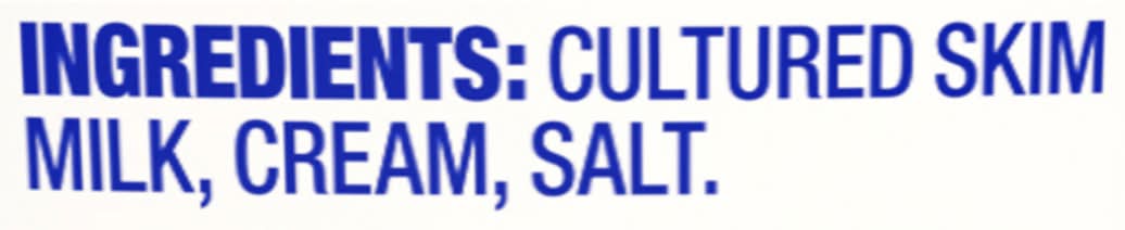 Ingredients: Cultured Skim Milk, Cream, Salt Contains: Milk