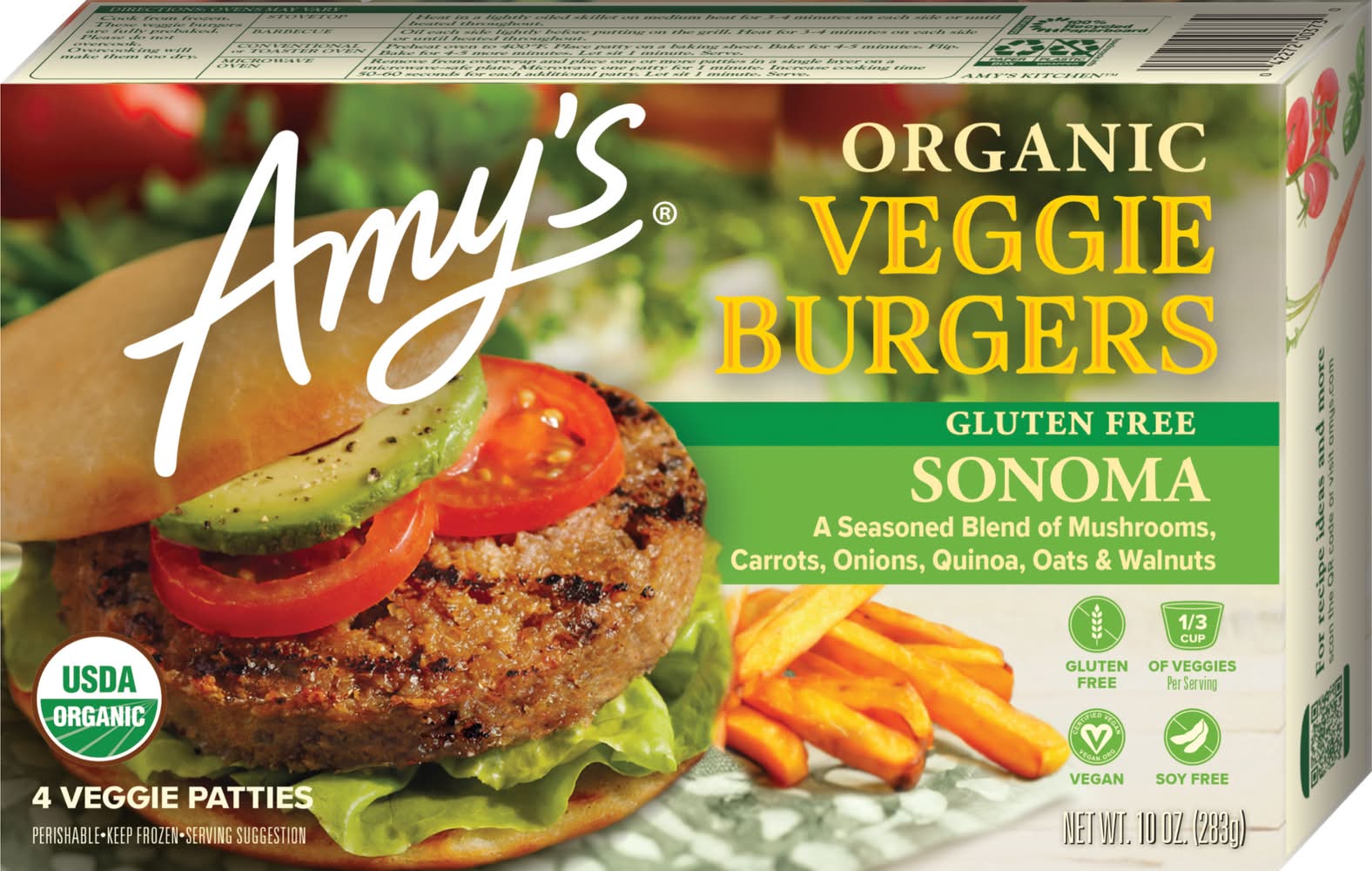 Organic Sonoma Veggie Burger • Amy's Kitchen Inc., PO Box 7129,Petaluma, CA, 94955 • Packaging: Reusable