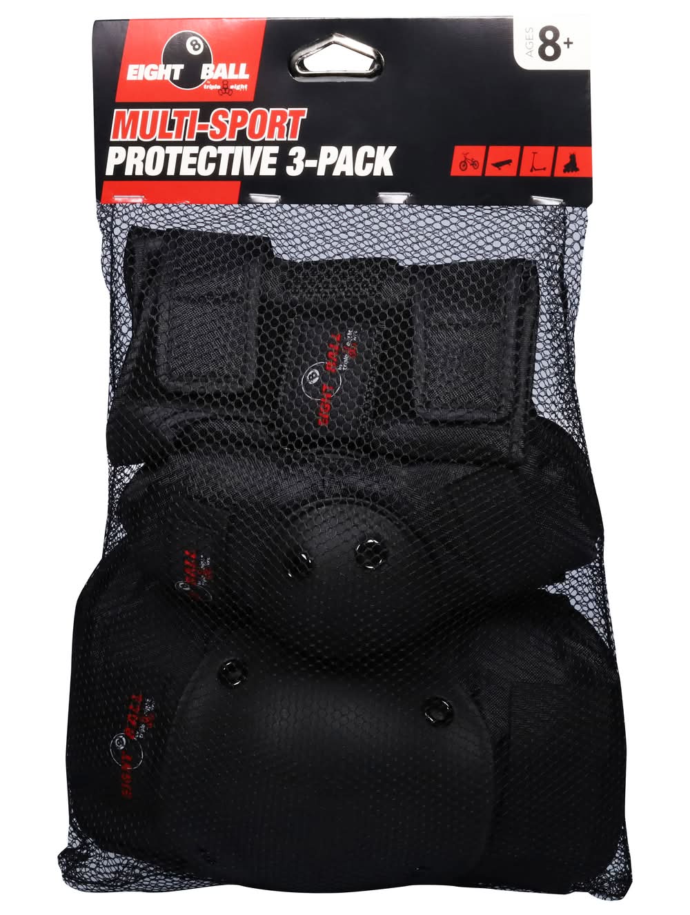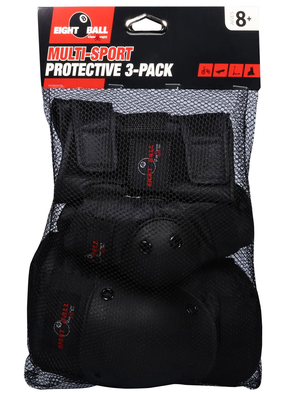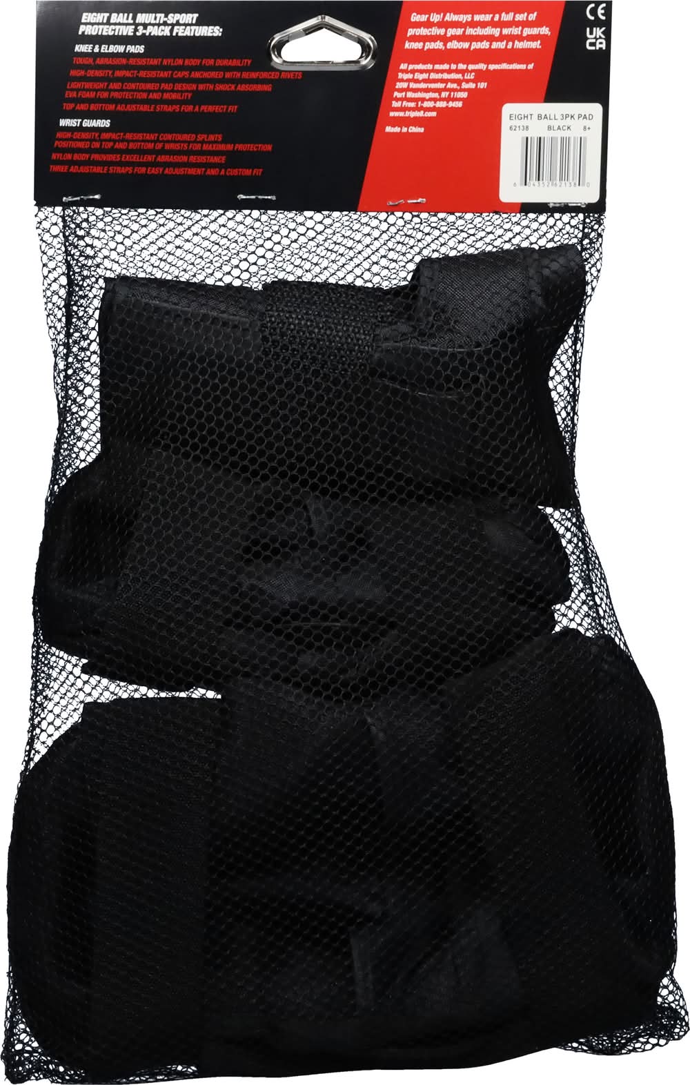Eight Ball Multi-Sport Protective Knee & Elbow Pads/Wrist Guards Ages 8+, Black