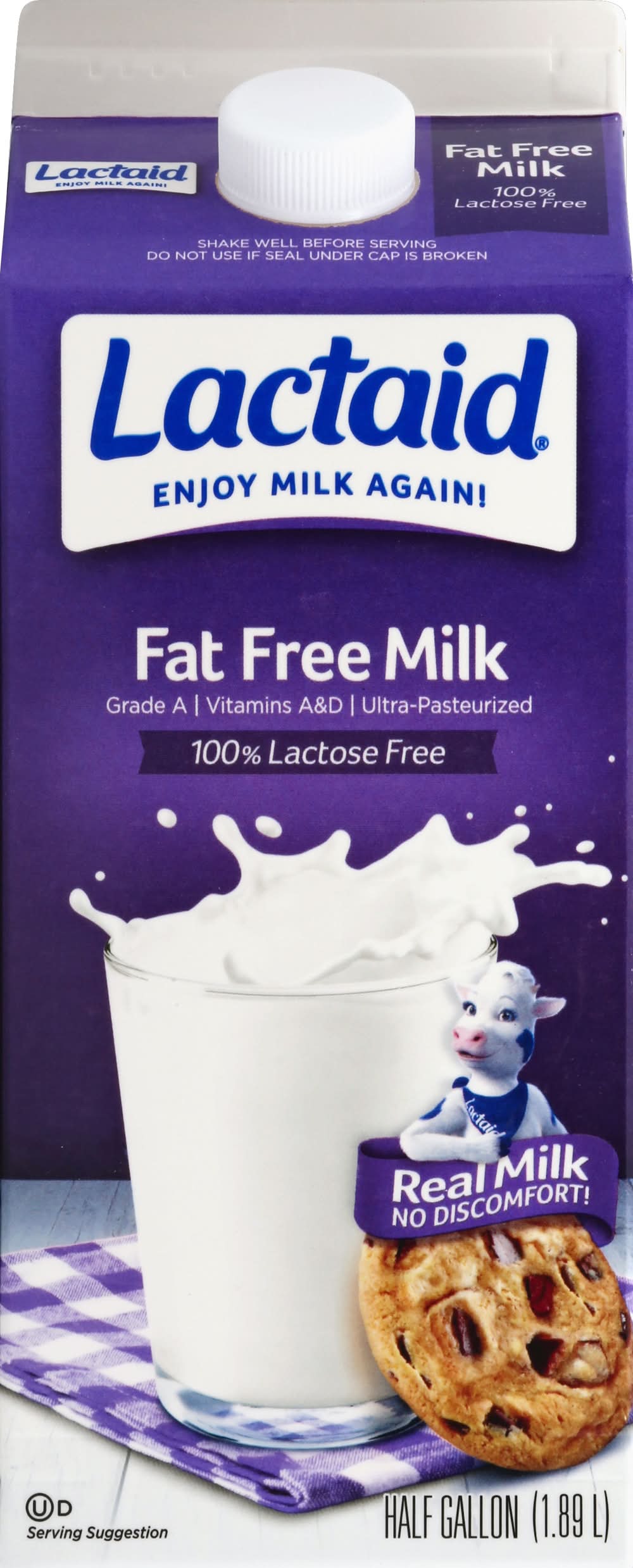 LACTAID® Fat Free Milk is 100% lactose and fat free so you can enjoy it with no worries. Lactaid is farm-fresh milk from cows that are never treated with artificial growth hormones, and all our milk is tested for antibiotics. All the goodness of real milk, just without the lactose. Hp Hood LLC, General Offices, Lynnfield,MA,01940