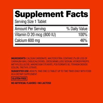 Just one easy-to-swallow calcium and vitamin D tablet gives you 100% of your daily value of vitamin D and over half of your daily requirement for calcium. These two work together, with vitamin D making it easier for your body to absorb and put the calcium to use for strong bones, muscles and immune system support. 100% Satisfaction Guaranteed.