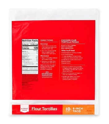 8-Inch Flour Tortillas from market pantry are just what you need to whip up delicious tacos for Taco Tuesday or any other day. Ten tortillas are included in this pack, perfect for a family dinner or to enjoy over many servings. The eight-inch size is ideal for holding taco fixings — like steak/chicken/beef, shredded lettuce, guacamole, hot sauce and more — or for making a yummy quesadilla with the same type of ingredients. These flour tortillas are ready to eat with simple heating, making lunch or dinner a breeze to prep. • Size: 8" • Packaging: Reusable