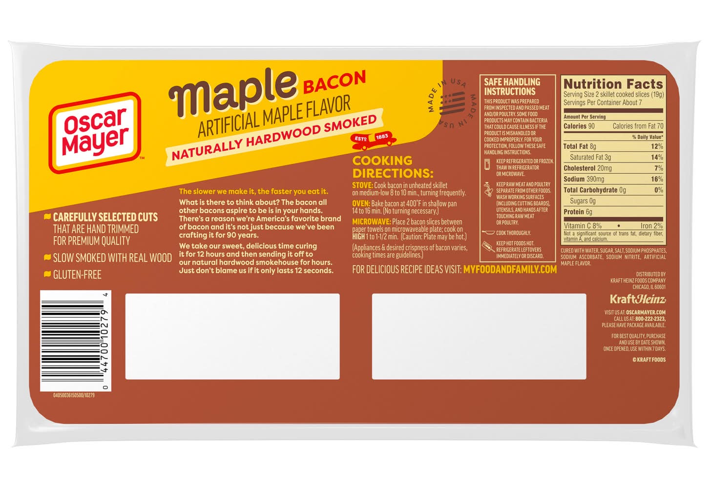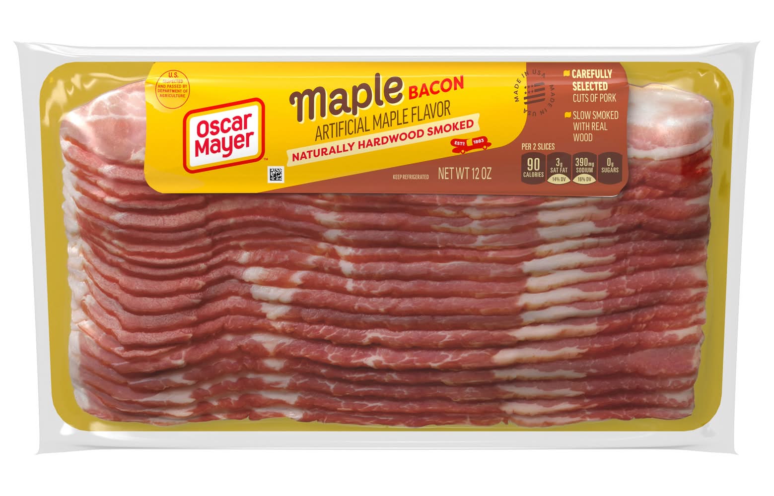 Ingredients: CURED WITH WATER, SUGAR, SALT, SODIUM PHOSPHATES, SODIUM ASCORBATE, SODIUM NITRITE, ARTIFICIAL MAPLE FLAVOR.