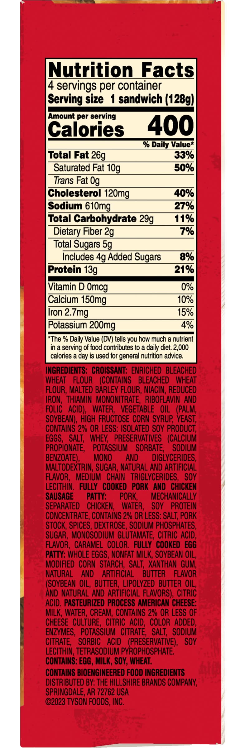 Croissant, Sausage, Egg & Cheese Sandwiches • The Hillshire Brands Company, Chicago,IL,60607,USA • Packaging: Reusable