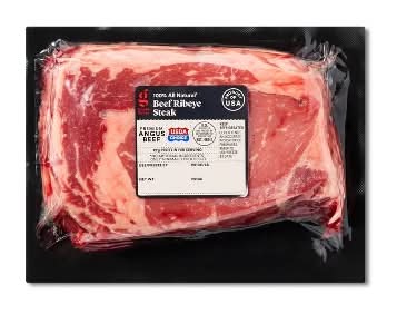 Call the family together for a night of fine dining with this Boneless Ribeye Steak from Good & Gather™. Perfect for dinner parties or family gatherings, this premium Angus beef comes without the bones so you can cut right in and enjoy. It's 100% all natural with no artificial ingredients and minimal processing so you can enjoy the pure steak flavor. Keep refrigerated to ensure freshness, then pan sear or grill with rosemary and butter for an unforgettable symphony of flavor. Every product that carries the Good & Gather™ name starts with quality ingredients that deliver great taste, making it easier for you and your family to eat well, every day. We promise you’ll love each bite, or your money back.