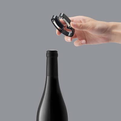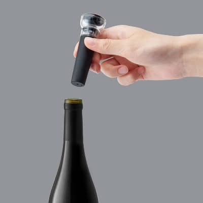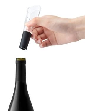 Houdini 6 piece corkscrew set includes a battery electric corkscrew, aerating pourer, foil cutter, 2 wine preserving stoppers and a base. Electric corkscrew opens wine with the touch of a button works on all types of cork including synthetic. The wine preserving stoppers preserves taste of wine until bottle is reopened. Aerate wine as you pour to improve flavor and bouquet of red wine. Compact storage perfect for countertop. Cheers set includes • electric corkscrew (battery operated) • wine preserving stoppers (2) • aerating pourer • foil cutter • base Color: Black
