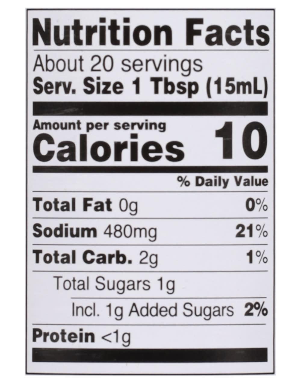 Ingredients: Soy Sauce (Water, Soybeans, Wheat, Salt), Water, Sugar, Vinegar, Salt, Dried Tuna Extract, Lactic Acid, Lemon Juice, Autolyzed Yeast Extract, Natural Lemon and Orange Flavors with Other Natural Flavors, Sodium Benzoate as a Preservative, Succinic Acid, Disodium Inosinate, Disodium Guanylate