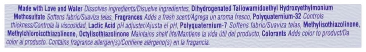 Ingredients: Dihydrogenated Tallowamidoethyl Hydroxyethylmonium Methosulfate, Fragrances, Polyquaternium-32, Lactic Acid, Polyquaternium-7, Methylisothiazolinone, Methylchloroisothiazolinone, Octylisothiazolinone, Colorants