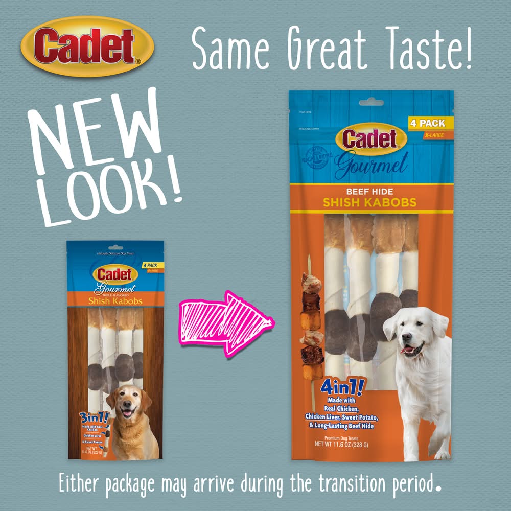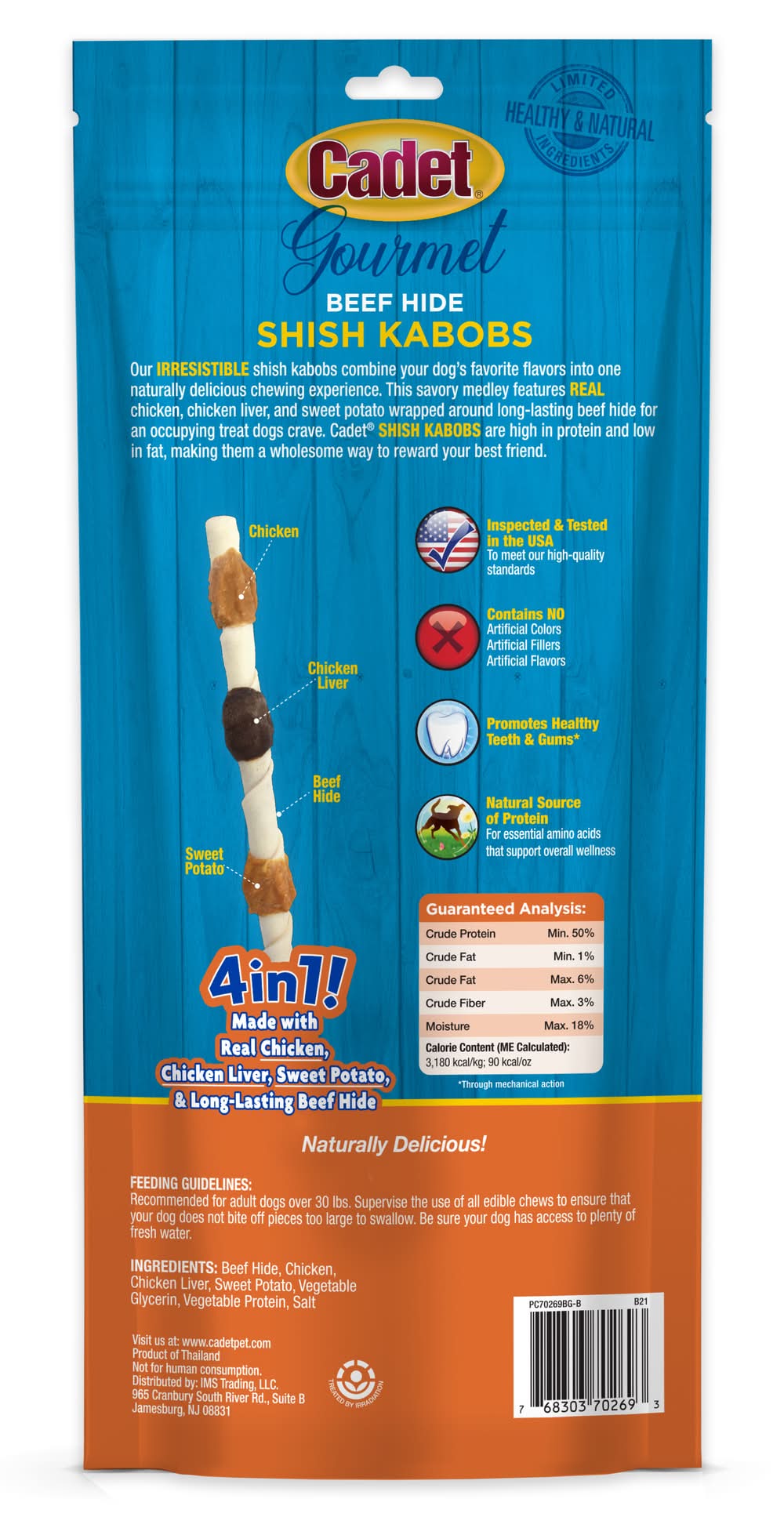 Cadet Premium Gourmet Rawhide Shish Kabobs Dog Treats, Shish Kebab-Chicken-Sweet Potato, X-Large (11.6 oz, 4 ct)