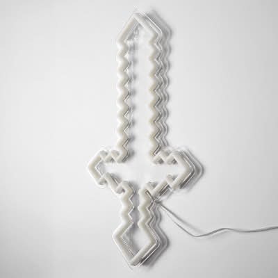 Light up your gaming sanctuary and keep away those hostile mobs with this Minecraft Diamond Sword Neon Light. Modeled after the iconic weapon from the game, this LED lamp designed to glow like neon adds a touch of pixelated adventure to any room. Those high-tech and energy-efficient LEDs allow for multiple lighting modes, including color change, so you can switch things up to fit your mood. Hang it on your wall or, better yet, plug the USB cable power cord into your computer or console while you play to showcase your love for the game in style.