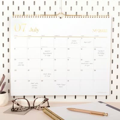 Find refined style and simplified planning with the Cambridge Workstyle Monthly Wall Calendar. Perfect for any professional, this calendar gives you more ways to keep events, appointments and deadlines organized all year long. This simple yet stylish calendar covers 12 months from July 2025 – June 2026 for academic planning. Unruled monthly pages let you see your big picture plans in an instant. Create a lasting relationship with your calendar. The durable gold twin wire binding helps the calendar stand up to wear and tear and has a built-in hanging loop. Size: Medium