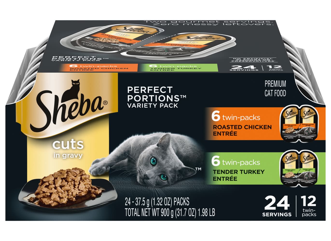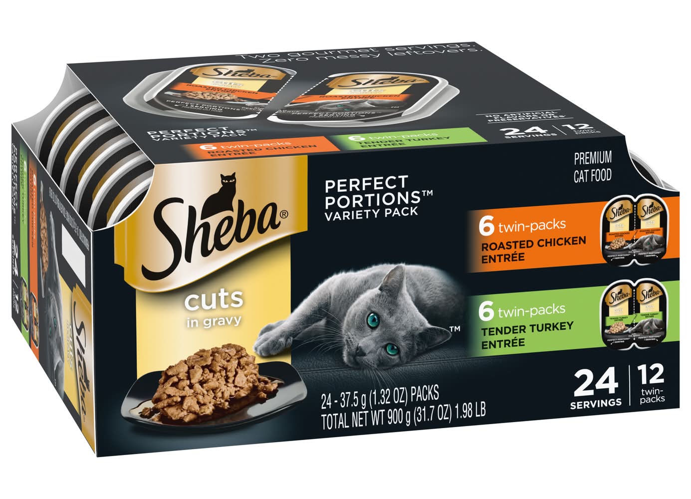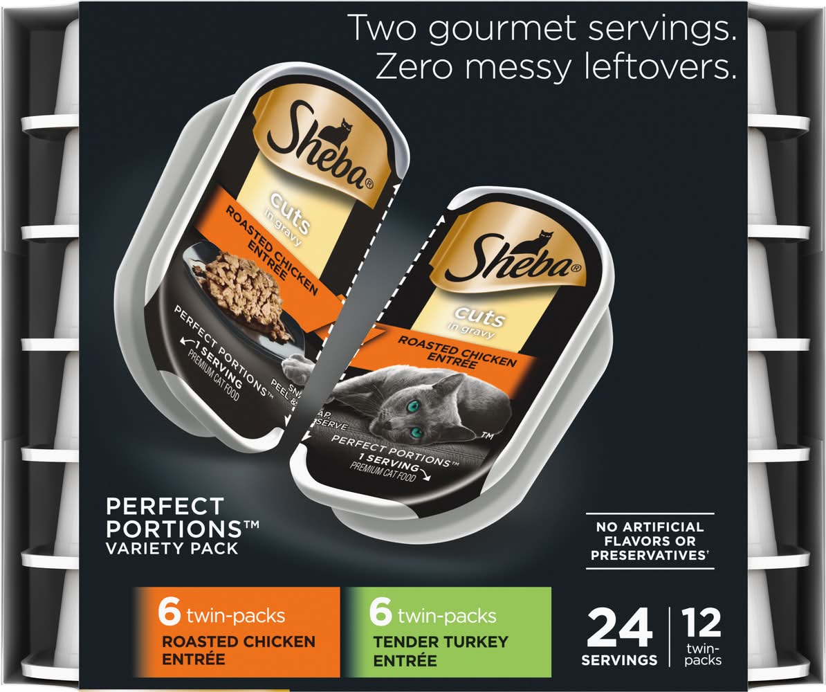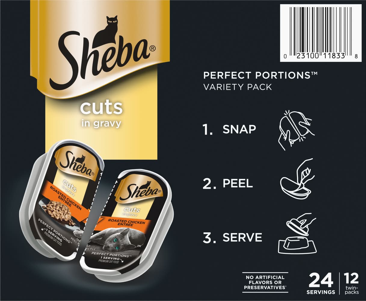 Sheba Perfect Portions Cuts in Gravy Canned Wet Cat Food Twin Variety pack (12 x 1.32 oz)