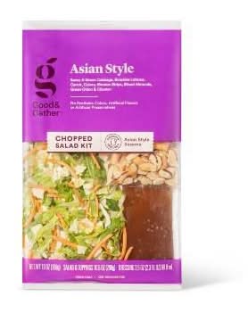 For a combination of great taste and convenient meal prep, you'll love reaching for the Asian Style Chopped Salad Kit from Good & Gather™. This Asian style salad kit includes savoy and green cabbage, romaine lettuce, carrots, celery, wonton strips, sliced almonds, green onion, cilantro and it's finished off with sweet sesame dressing, giving you a delicious Asian-inspired bite that you and your family are sure to appreciate. The 13-ounce kit gives you enough salad for side dishes, quick lunches and more. Plus, it has no synthetic colors, artificial flavors or artificial preservatives. Every product that carries the Good & Gather™ name starts with quality ingredients that deliver great taste, making it easier for you and your family to eat well, every day. We promise you’ll love each bite, or your money back.