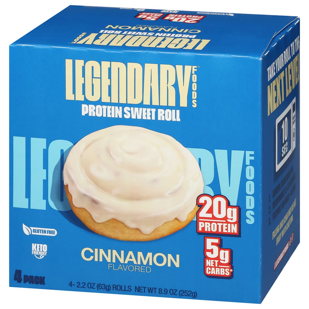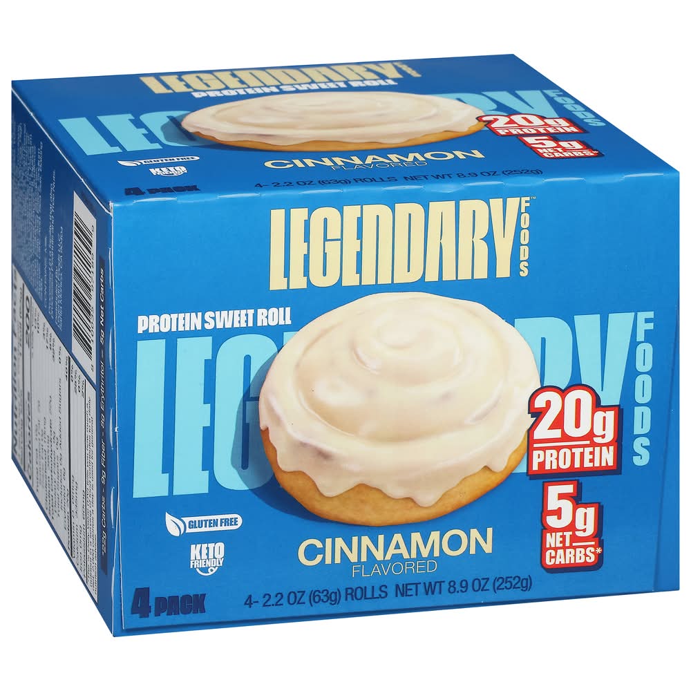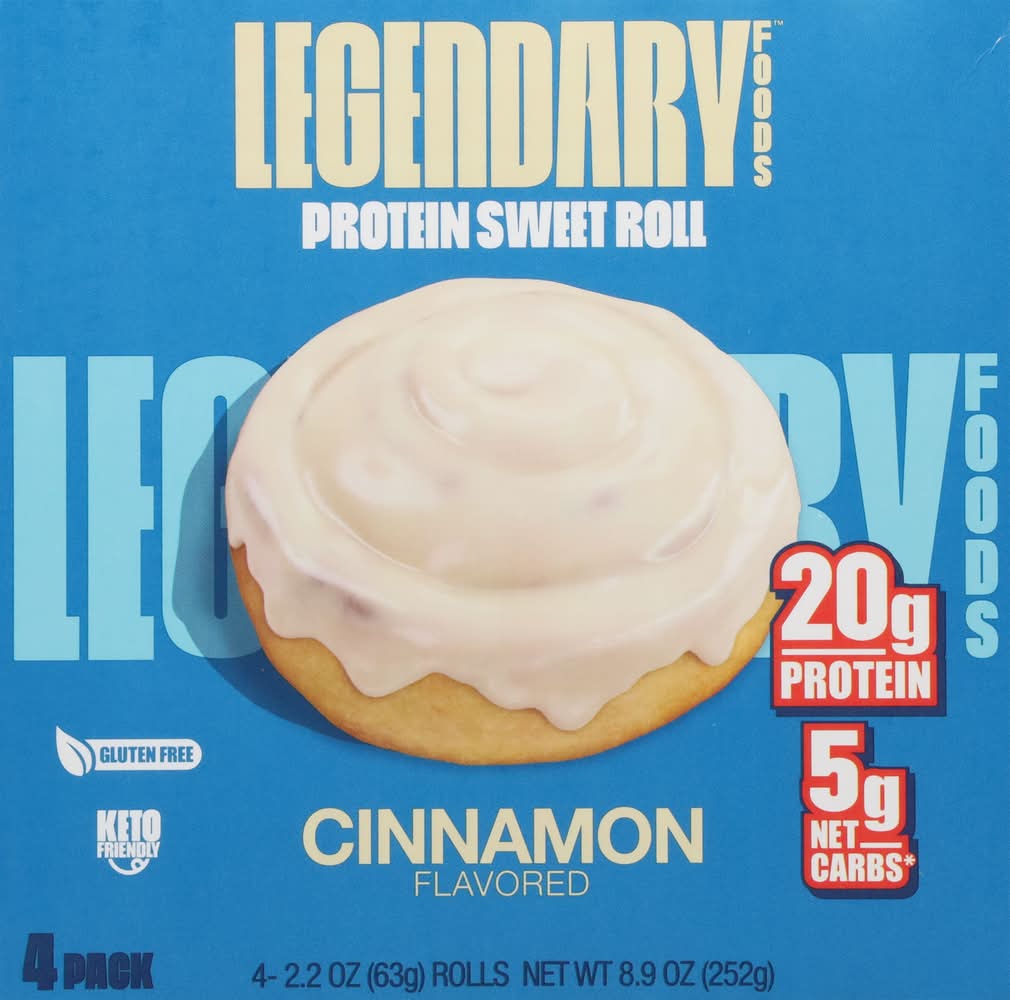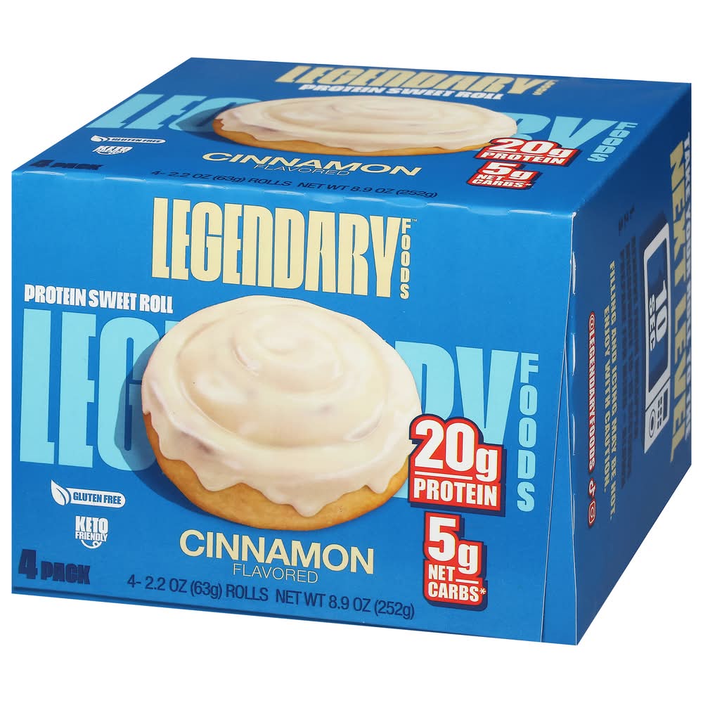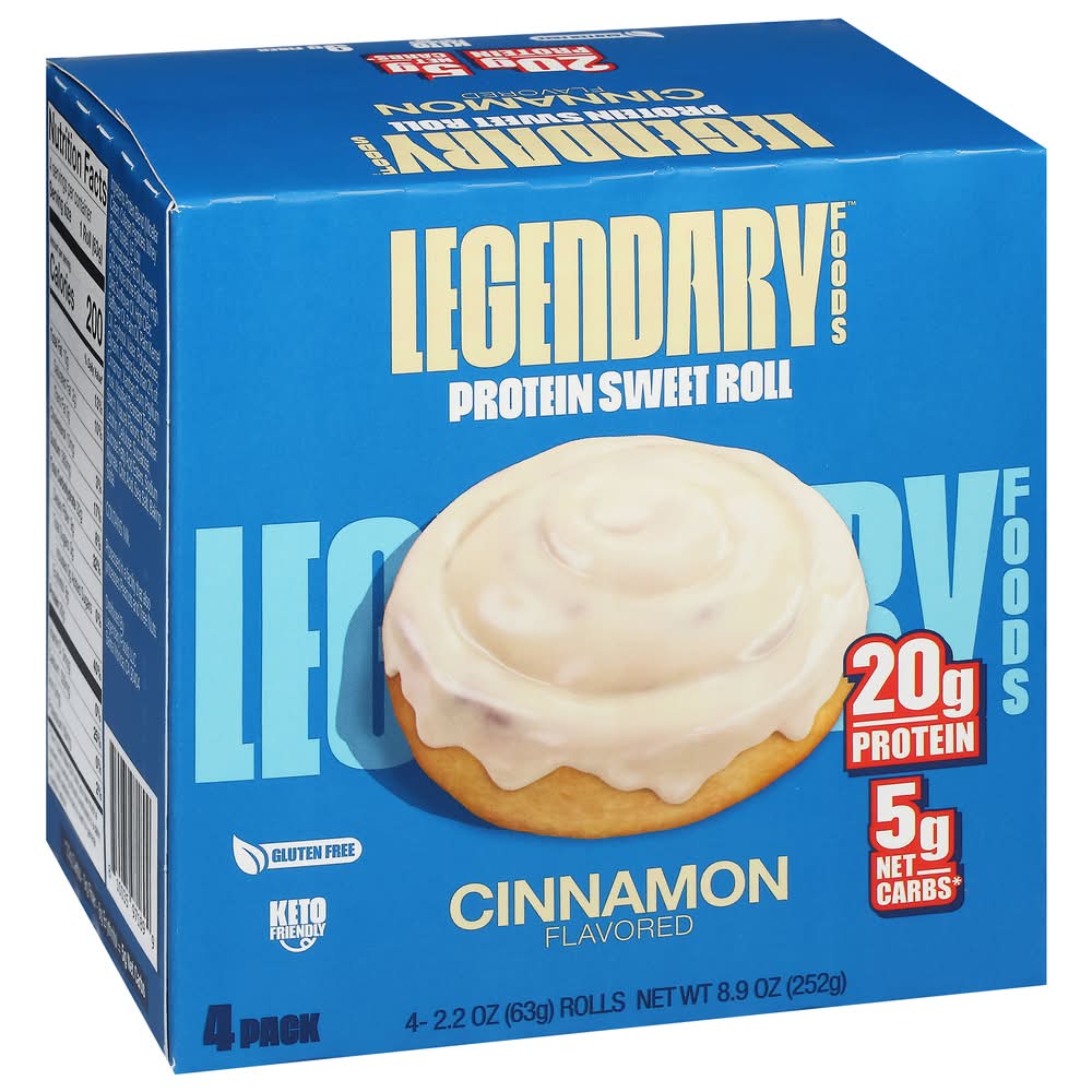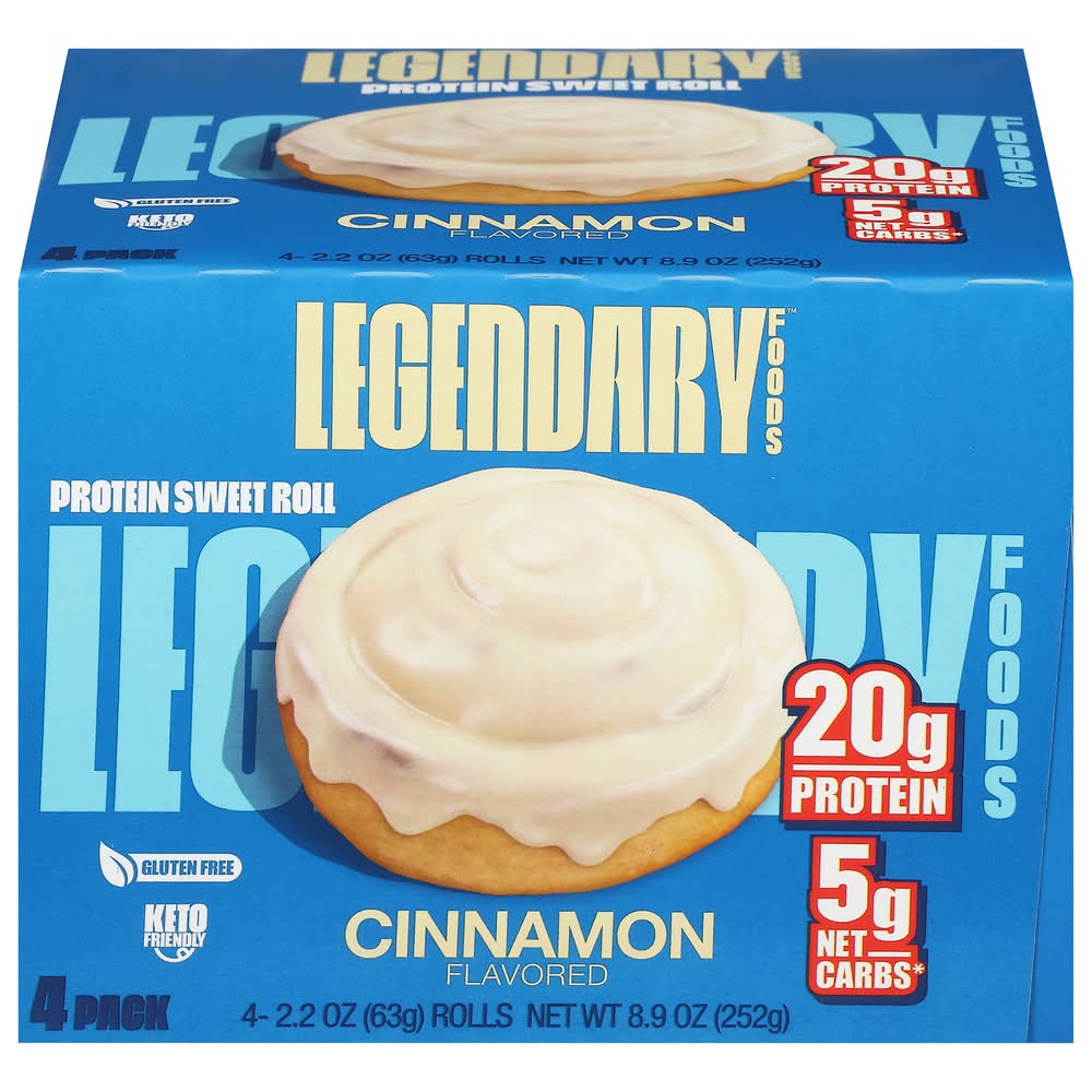 "Looking to take your protein snack game to the next level? Say hello to Legendary Foods Protein Sweet Roll! This isn’t just a pretty picture on a label – this is the real deal. Experience the iconic Cinnamon roll taste you love, now packed with 20g of protein, 5g net carbs, and 0g sugar! Whether you're looking for an on-the-go meal, a delicious high protein snack, or a way to curb your sweet tooth without the excess calories, carbs, or sugar, Legendary Protein Sweet Rolls have got you covered! These rolls are a fantastic, flavor and texture packed alternative to traditional protein bars and protein shakes. Every Legendary Foods Protein Sweet Roll is ready-to-eat straight from the wrapper or can be microwaved for 10-15 seconds for a next-level experience. Enjoy a healthier choice compared to regular breakfast bars or donuts. From healthy snacks for adults to healthy snacks for kids, Legendary Foods Protein Sweet Rolls are a crowd pleaser. With high protein content and low carbs, it's a guilt-free indulgence that supports your health goals. • Flavor: Cinnamon • Pack size: 4
