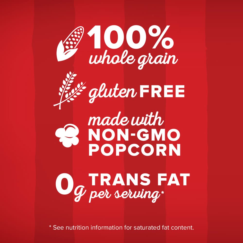Ingredients: Whole Grain Popping Corn, Palm Oil, Salt, Sucralose, Mixed Tocopherols (Vitamin E for freshness), .