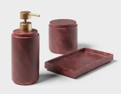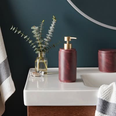 Create a luxurious bath space with the addition of this Luxe Faux Marble Soap Pump. This wine-hued soap bottle is designed with a contrasting gold-tone pump for an eye-catching look you'll love. Made of faux marble, it's designed for use with lotion and liquid soaps. Threshold™: Looks like home, feels like you. Color: Wine