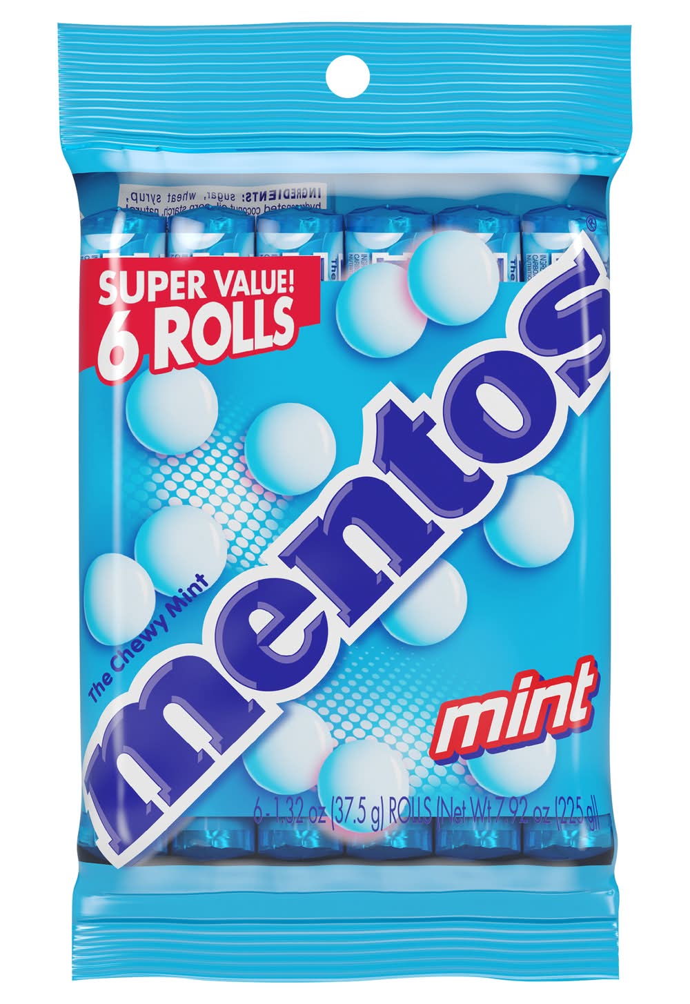 Make fresh connections with Mentos Mint Chewy Mints! Th multi-pack includes six mint candy rolls. Mentos Mint candy rolls offer freshness in a fun, flavorful chew. The white mint candy is perfect for the office, baby shower favors, wedding candy and other events. • Flavor: Mint • Pack size: 6 • Number of servings: 84