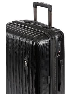 SwissGear Energie Hardside Medium Checked Spinner Suitcase - Black: Aluminum Handle, Tear-Resistant, Polycarbonate Shell