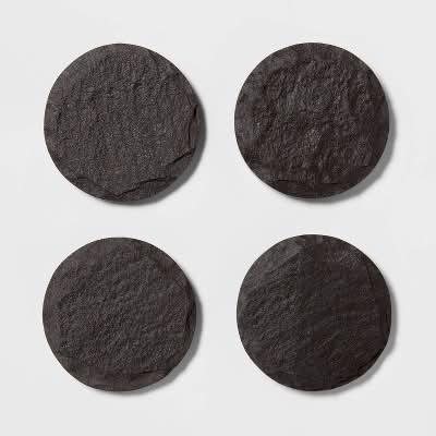 Threshold Traditional Style Slate Coasters, 4x4 Inch, Black (4 ct)