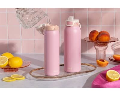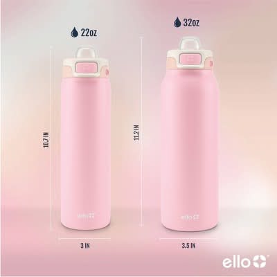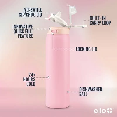 Ello Pop and Fill Stainless Steel Water Bottle 22 oz, Sorbet Pink