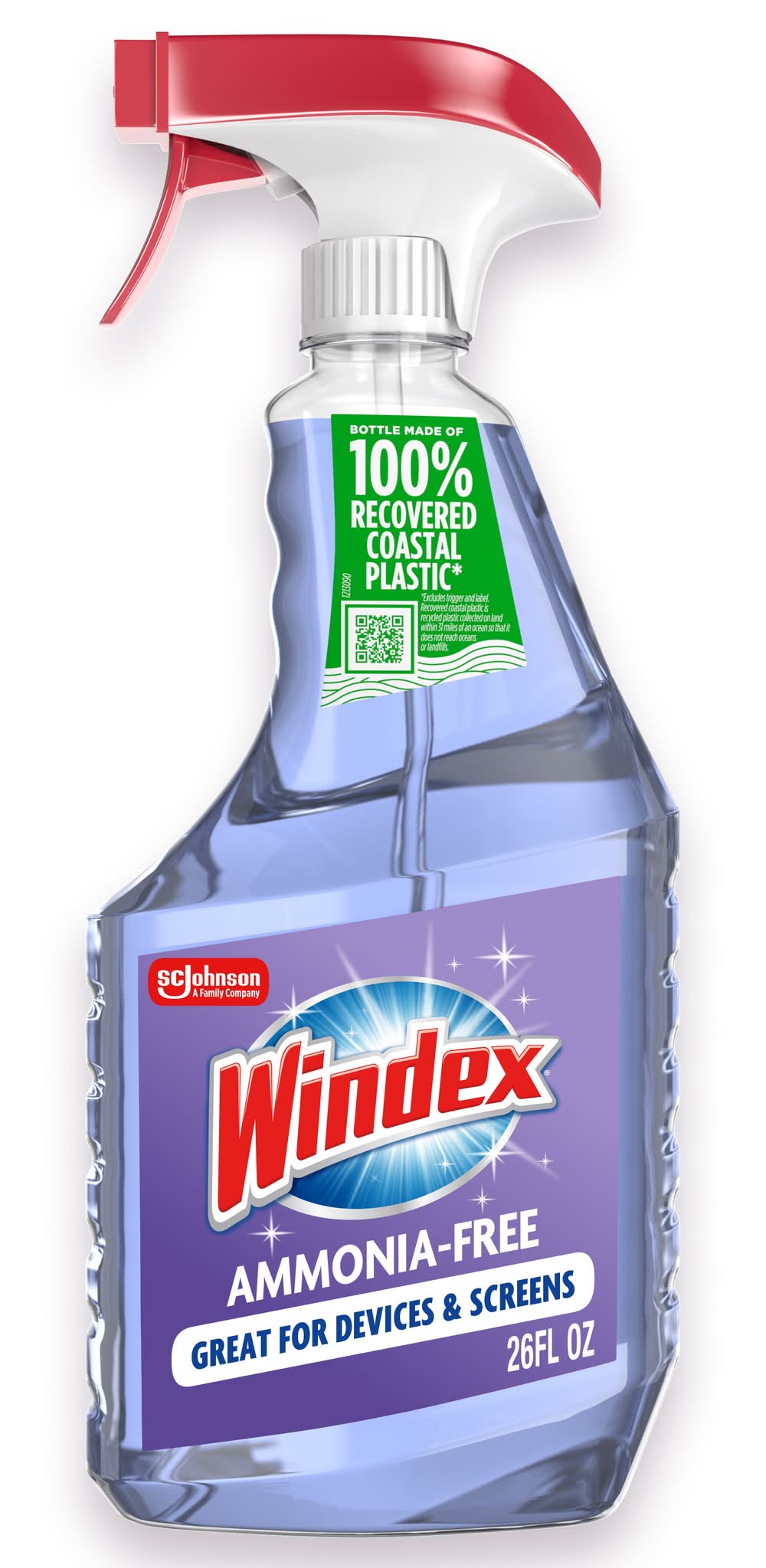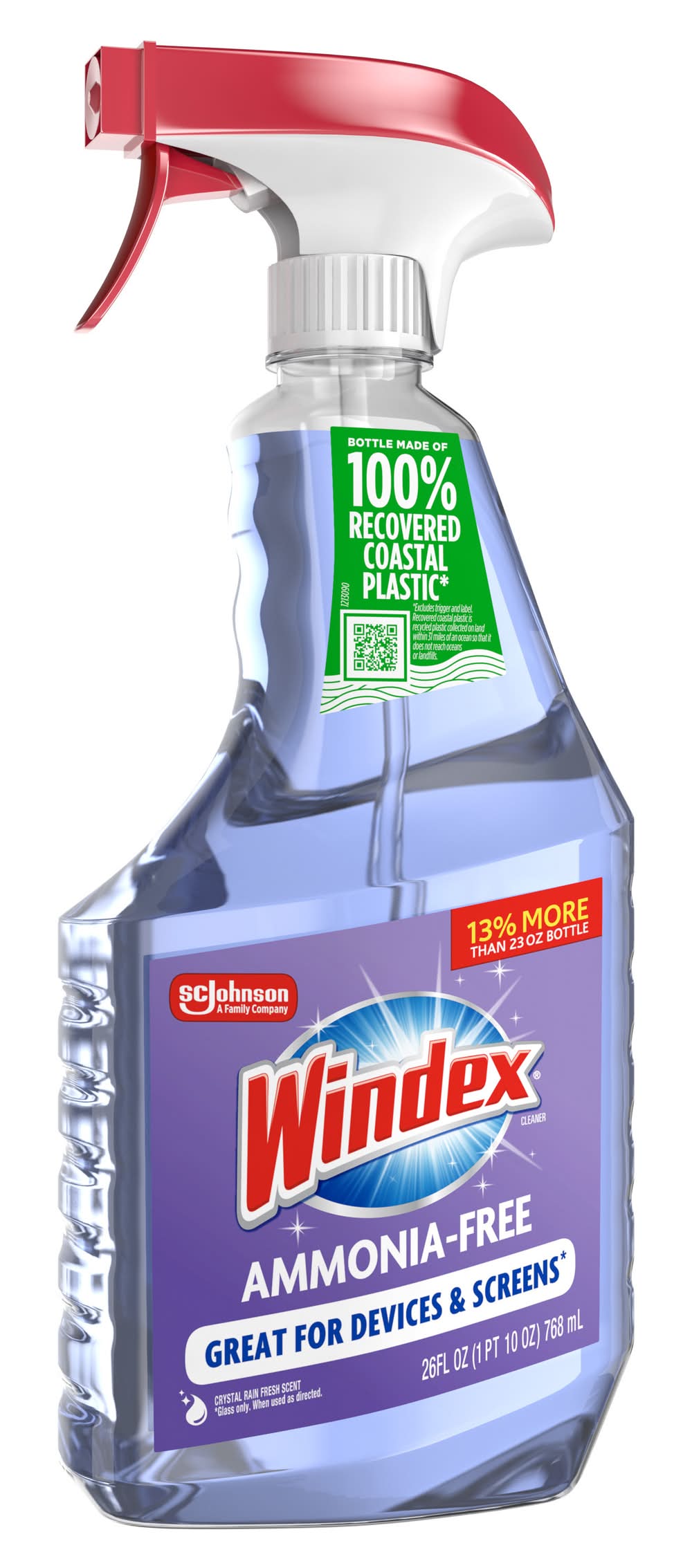 Windex® Ammonia-Free Glass Cleaner is a streak-free window cleaner spray that cleans smudges and smears without ammonia. Our ammonia-free window cleaner works great on dirt, removing smudges, fingerprints and other messes. Its ammonia-free formula cleans, shines and leaves a fresh scent. This glass cleaner is perfect for cleaning windows, mirrors, glass table tops and more. Enjoy 100% of the goodness that natural light brings with Windex® Ammonia-Free Glass Cleaner. Light is Life. Let it all in. Windex Ammonia-Free spray bottles are made from 100% Recovered Coastal Plastic*. *Excluding trigger. Recovered Coastal Plastic, in partnership with Plastic Bank, is recycled plastic collected on land within 31 miles of an ocean so that it does not reach oceans or landfills.