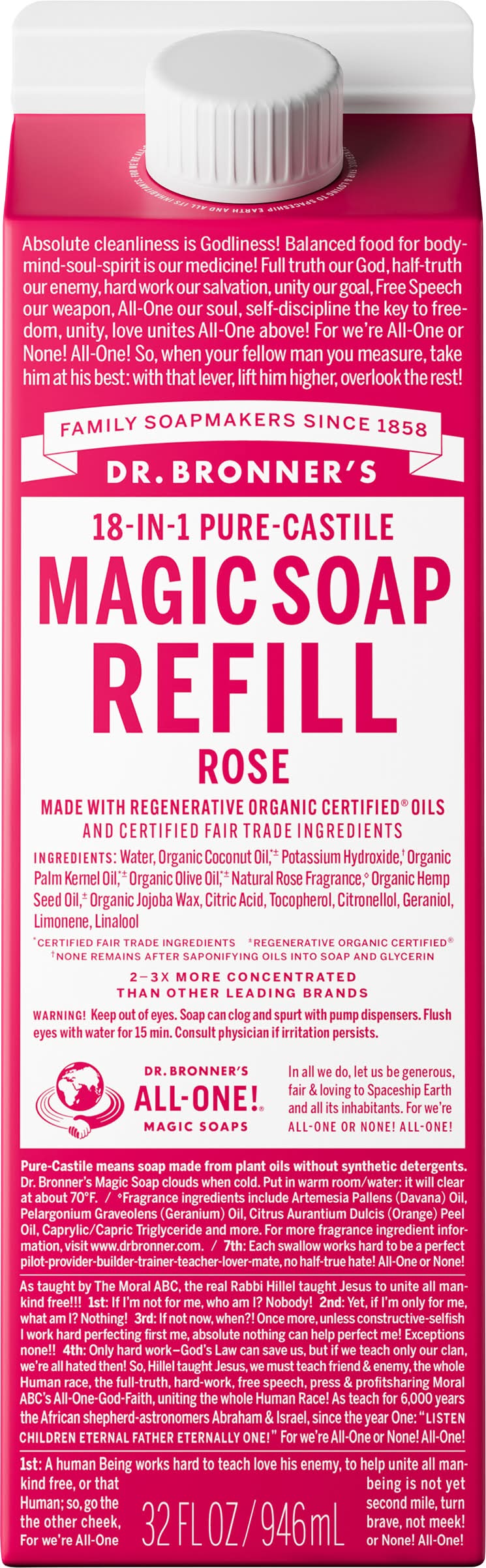 Dr. Bronner's 18-In-1 Hemp Rose Pure-Castile Soap Refill (32 fl oz)