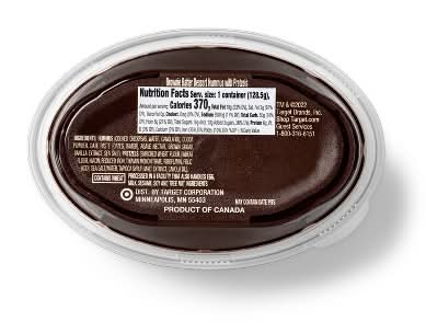 For an easy add-on to your kid’s lunch or a no-fuss dessert, try the Brownie Batter Dessert Hummus with Pretzels from Good & Gather. Made with chickpeas and cocoa powder and sweetened with brown sugar, this brownie batter hummus has flavor that's sure to satisfy and has no synthetic colors or flavors. This dessert hummus cup comes with pretzels for a convenient sweet and salty treat that’s easy to toss in a lunchbox, backpack or purse anytime you’re on the go. Every product that carries the Good & Gather name starts with quality ingredients that deliver great taste, making it easier for you and your family to eat well every day. We promise you’ll love each bite or your money back.