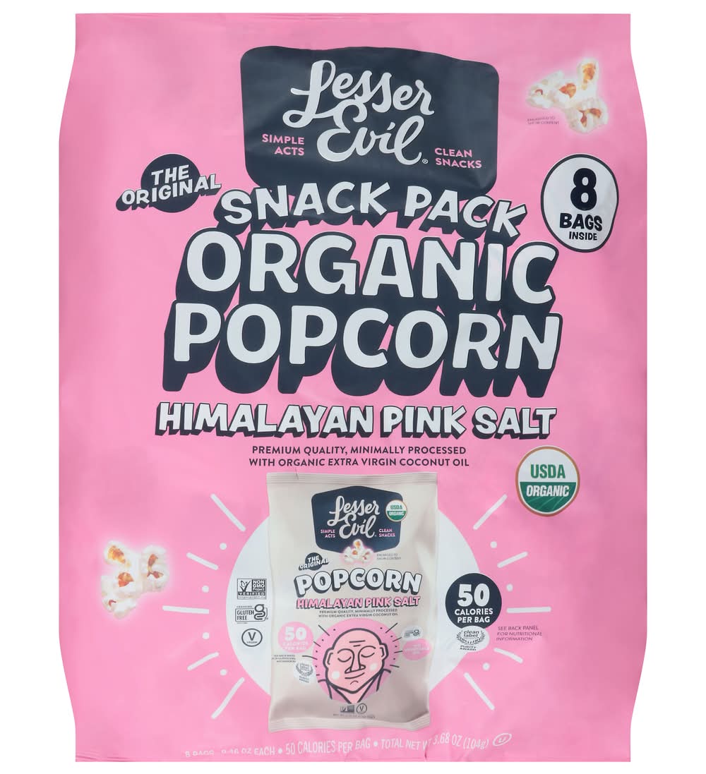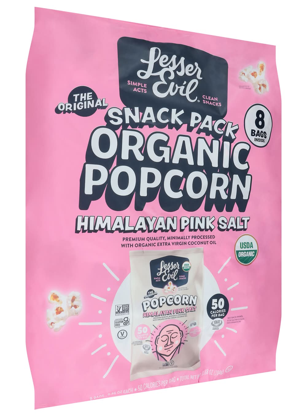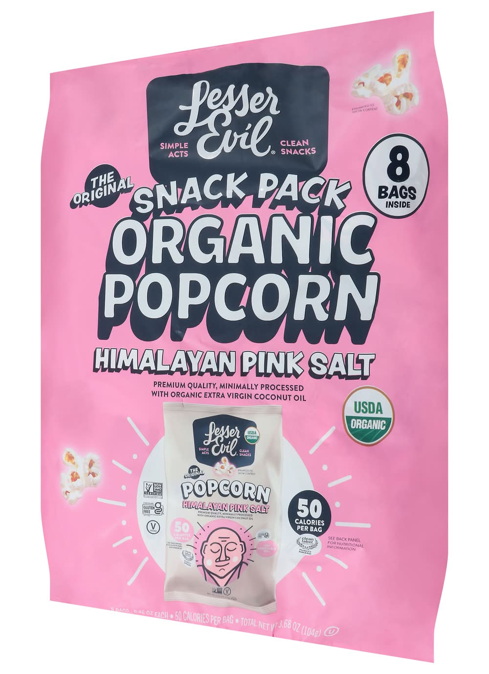 LesserEvil Organic Popcorn Snack pack, Himalayan-Pink-Salt (3.68 oz)