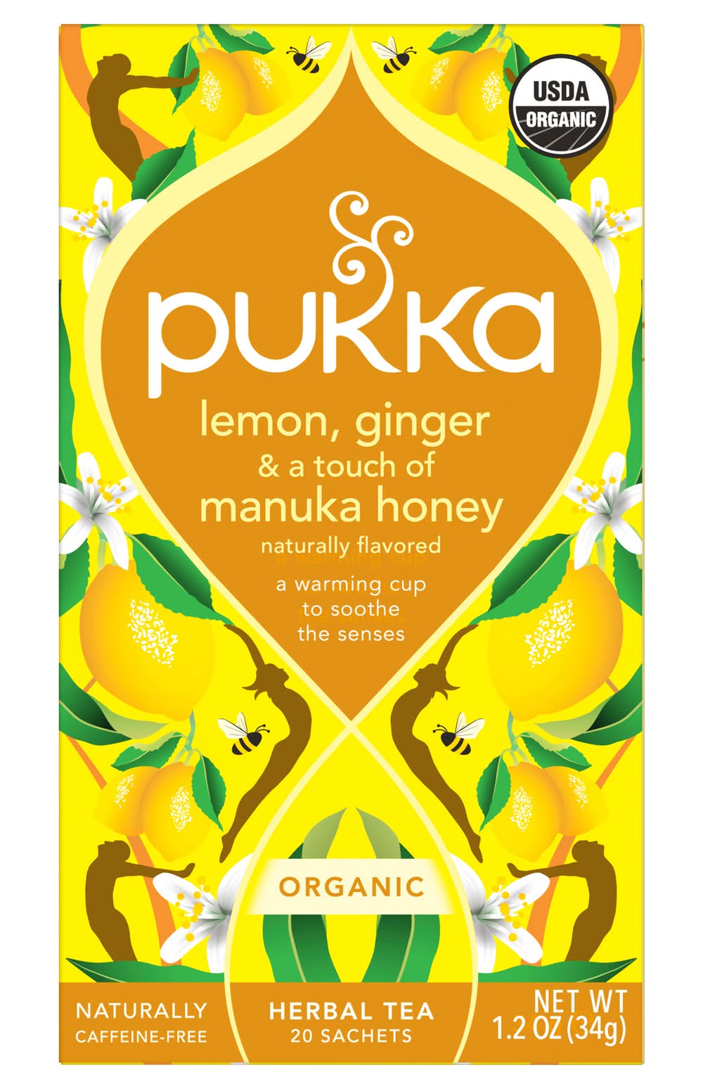 Pukka Herbal Tea Sachets, Lemon-Ginger-Manuka Honey (1.2 oz, 20 ct)