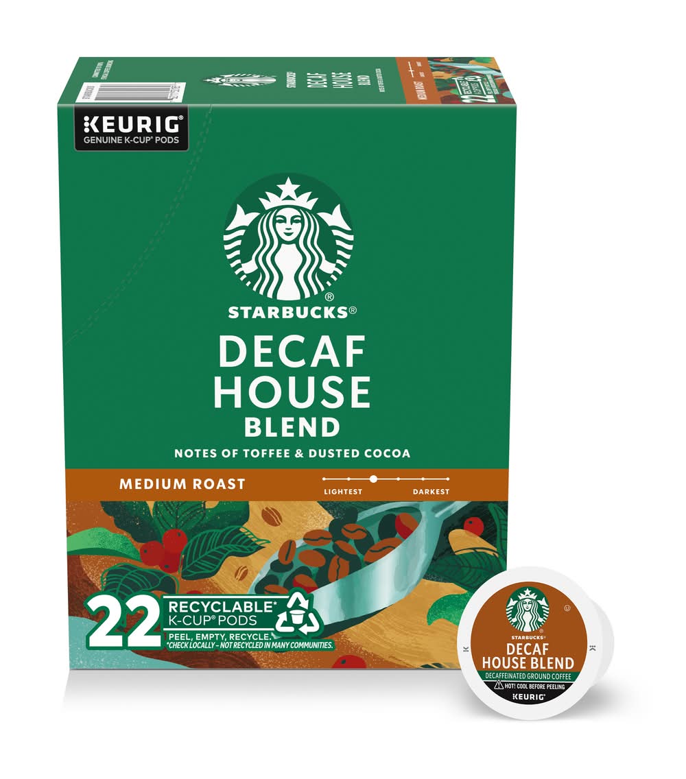 Starbucks Decaf House Blend Coffee Medium Roast K Cup Pods, Decaf House (9.2 oz, 22 ct)