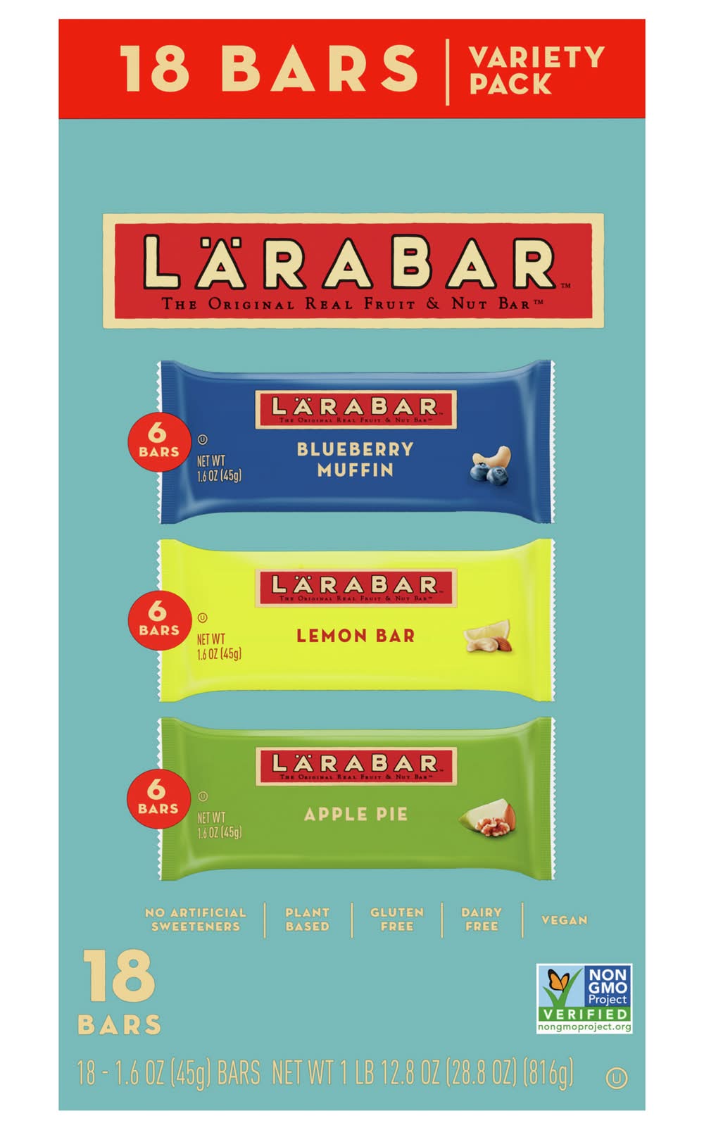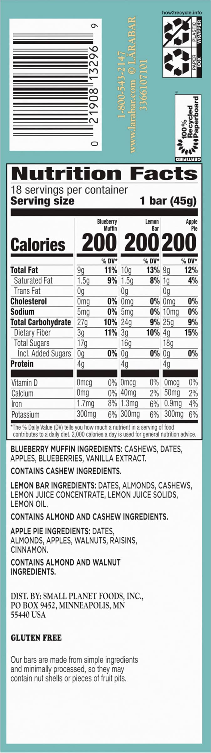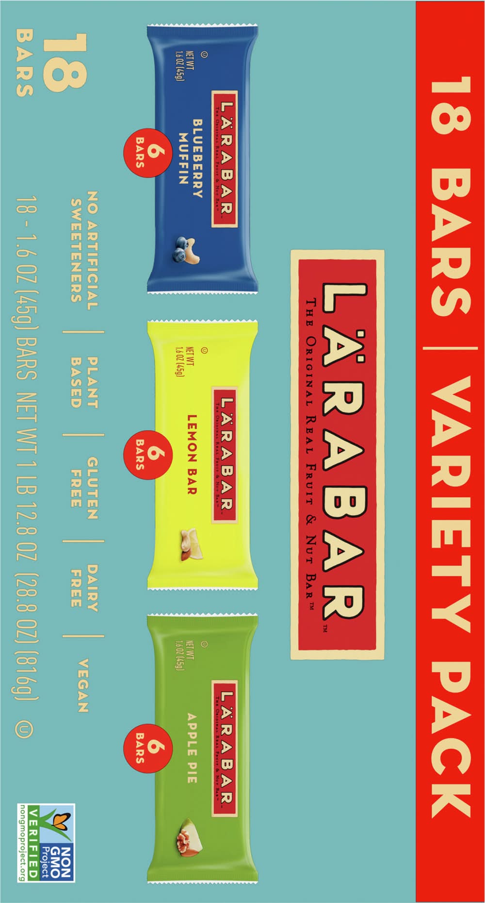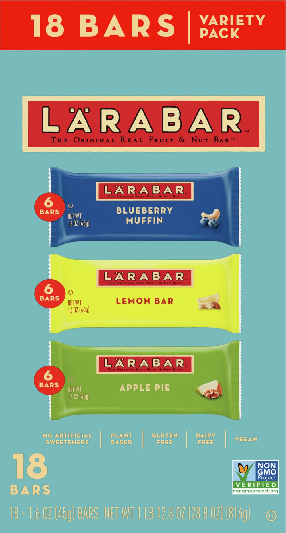 Lärabar Variety Bars, Blueberry Muffin-Lemon Bar-Apple Pie-Fruit-Nut (12 oz, 18 ct)