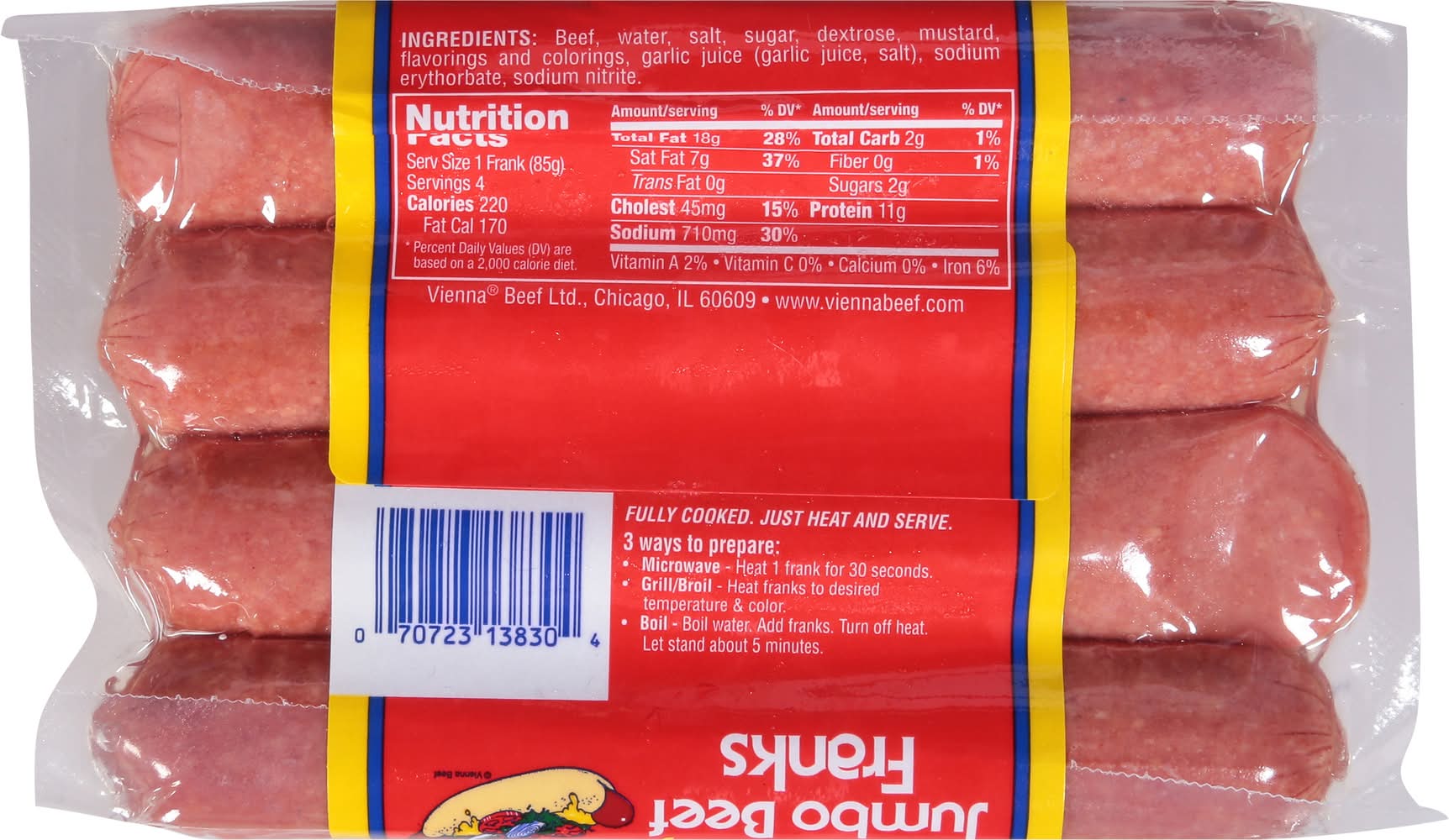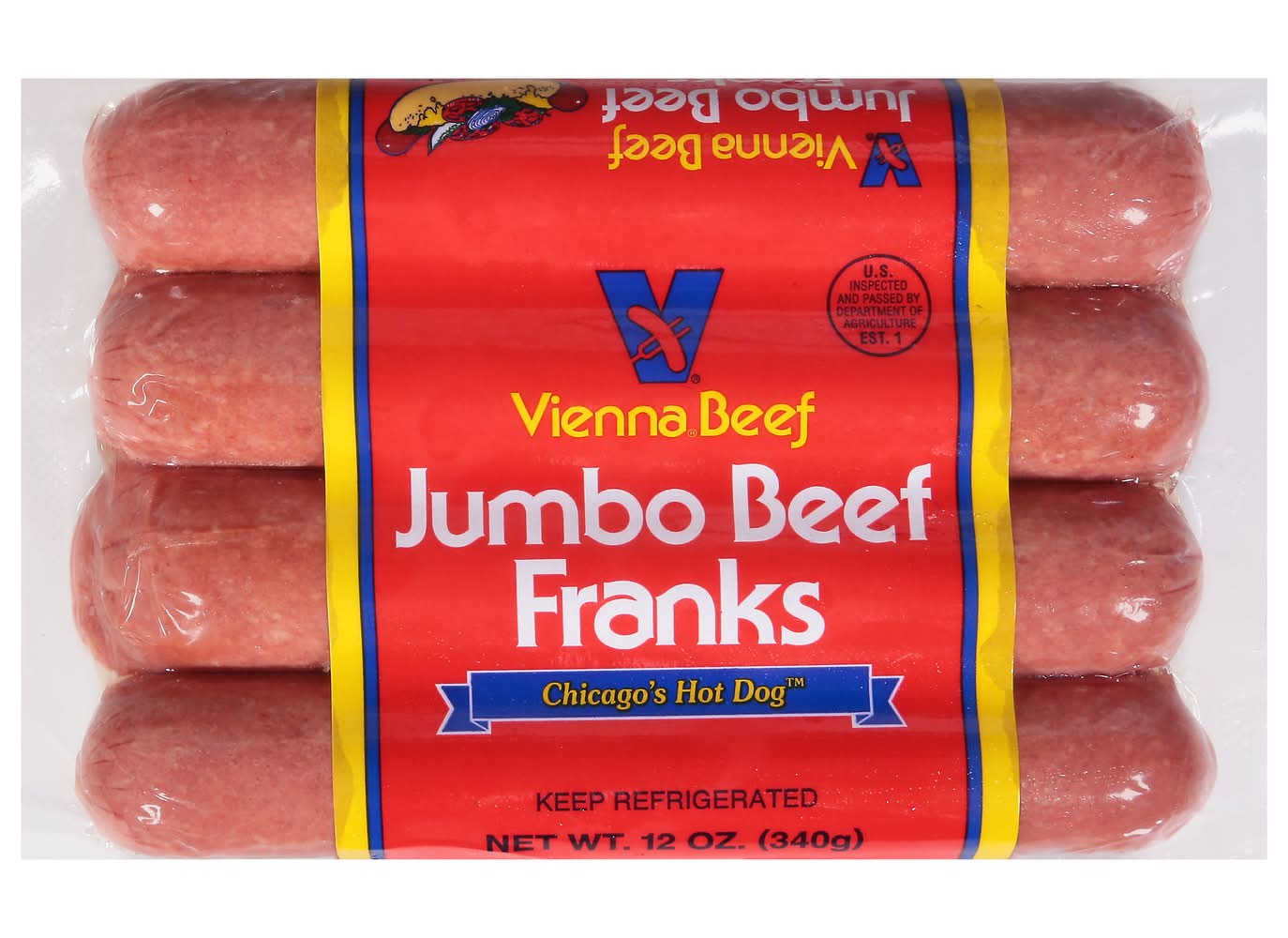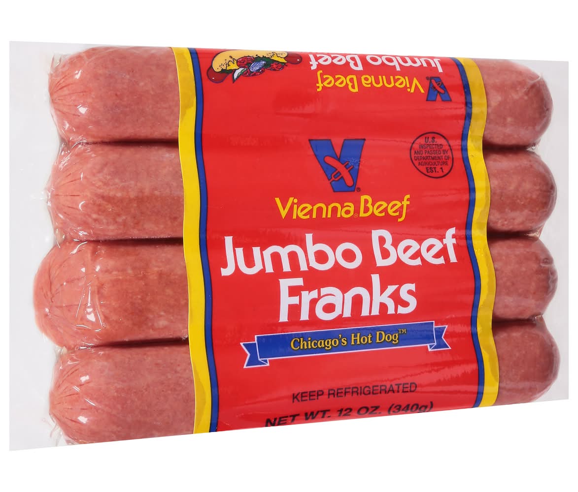 Vienna Beef Jumbo Beef Franks Hot Dog (12 oz, 4 ct)