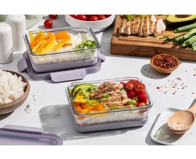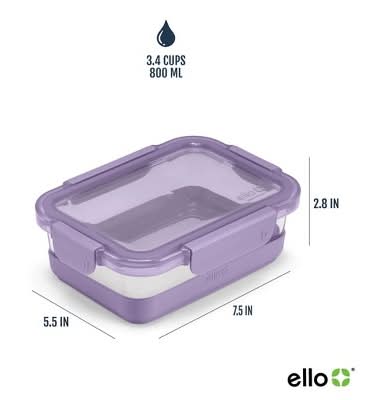 Make meal prep fun! The Ello Duraglass 4-piece Meal Prep Set includes two 3.4 cup (27oz) glass containers each with leak-proof lids and silicone protection boots to protect from chips and breaks. Duraglass containers are dishwasher, microwave, and oven safe without the lid. No need to remove the silicone sleeve! Our non-porous glass ensures that it won't absorb stains or odors, keeping your food fresh and your containers looking new. Please remember to let containers cool before placing them on wet or cold surfaces. Color: Purple