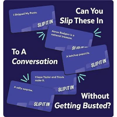 Get everyone talking in this party game that transforms boring chitchat into hilarious quests to insert random phrases into your conversations. Can you sneak 'slippery when wet' into a weather discussion or work 'deep fried Twinkie' into a restaurant order without getting busted? Slip It In and find out in this game perfect for nights out with friends, dinner parties and nights!