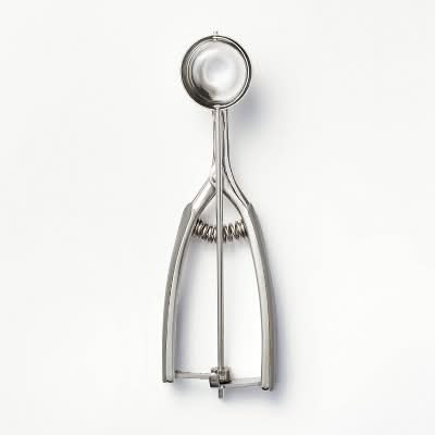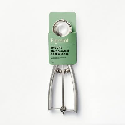 Making fresh homemade cookies will be easier than ever with this 1.5-Tablespoon Stainless Steel Cookie Scoop from Figmint™. Made from BPA-free stainless steel in gray, this cookie scoop scoops dough excellently with a spring-loaded handle, and the wiper easily ejects sticky dough. Plus, soft non-slip grips help keep your hands comfortable and steady as you work. Figmint™: Mixing up a taste of adventure every day.