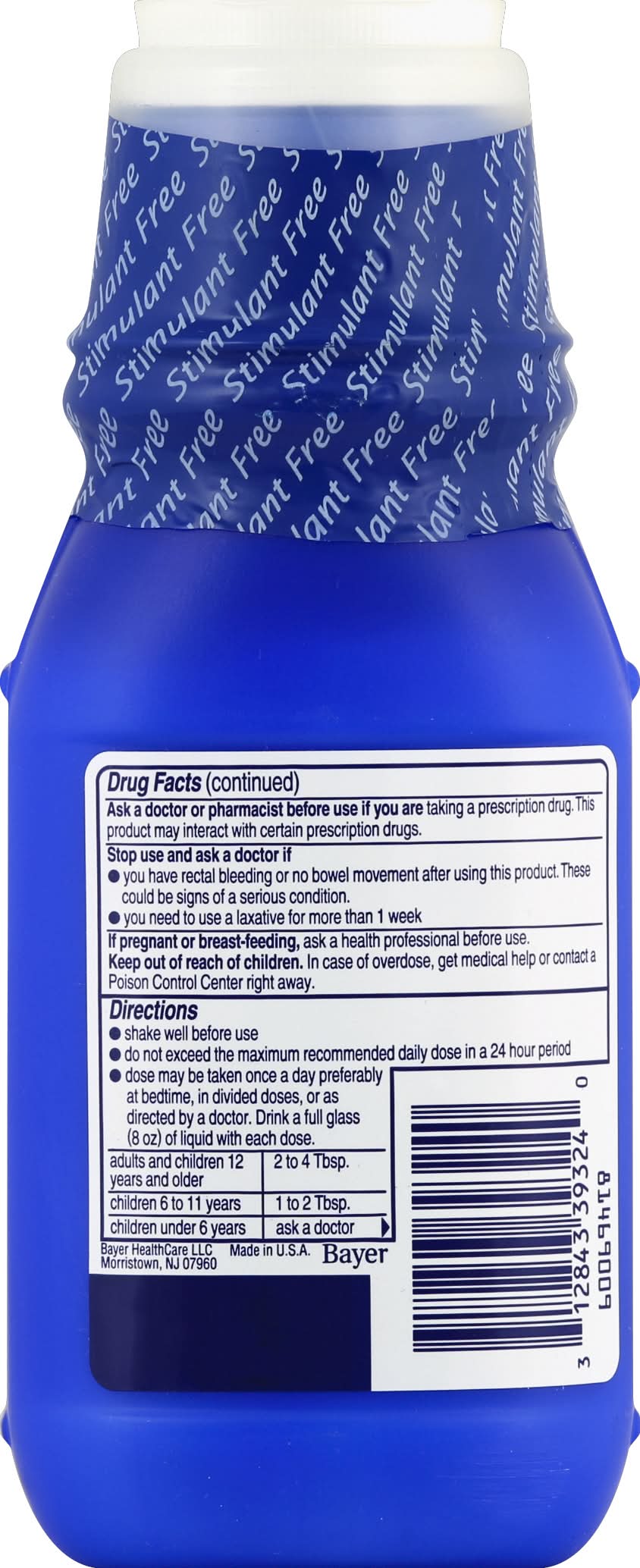 Do not exceed the maximum recommended daily dose in a 24 hour period. shake well before use. dose may be taken once a day preferably at bedtime, in divided doses, or as directed by a doctor. drink a full glass (8 oz) of liquid with each dose. for accurate dosing, use the enclosed dosing cup. ml = milliliter; tbsp = tablespoon. adults and children 12 years and older: 2 to 4 tbsp. children 6 to 11 years: 1 to 2 tbsp. children under 6 years: ask a doctor.