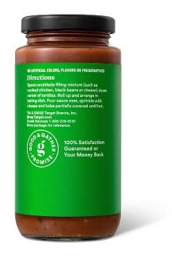 Mexican-Inspired Roasted Jalapeno Enchilada Sauce from Good & Gather™ makes it easy to create an authentically flavored and satisfying dish without a lot of work. Made with roasted jalapeno peppers, chipotle peppers and dried epazote, this enchilada sauce offers rich flavor that doesn't overwhelm the palate. Mild heat perks up the senses and makes this sauce a true fan favorite. For a simply delicious dish, spoon a filling mixture (such as cooked chicken, black beans or cheese) down the center of tortillas, then roll them up and arrange in a baking dish. Pour the roasted jalapeno sauce on top, sprinkle with cheese and bake partially covered until hot. No matter what you do with it, this enchilada sauce is sure to create new favorites in the mealtime rotation. Good & Gather™: Making it easy to eat well every day.
