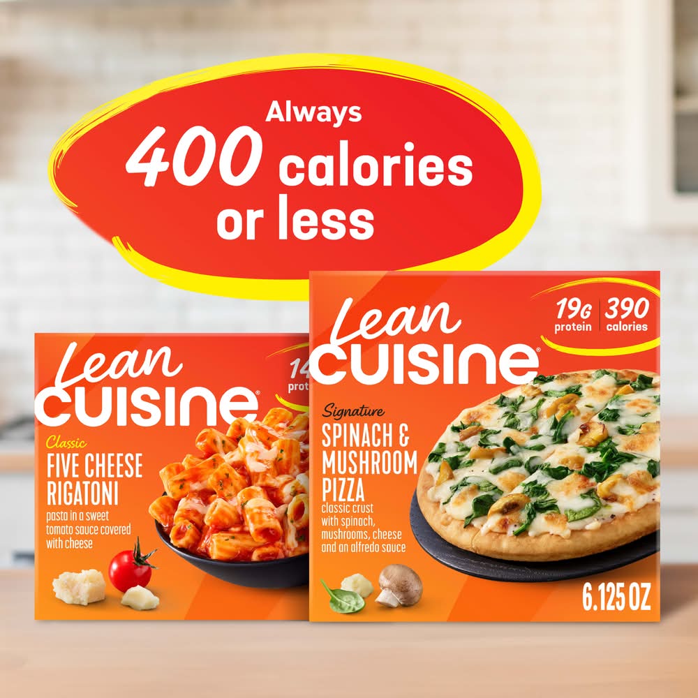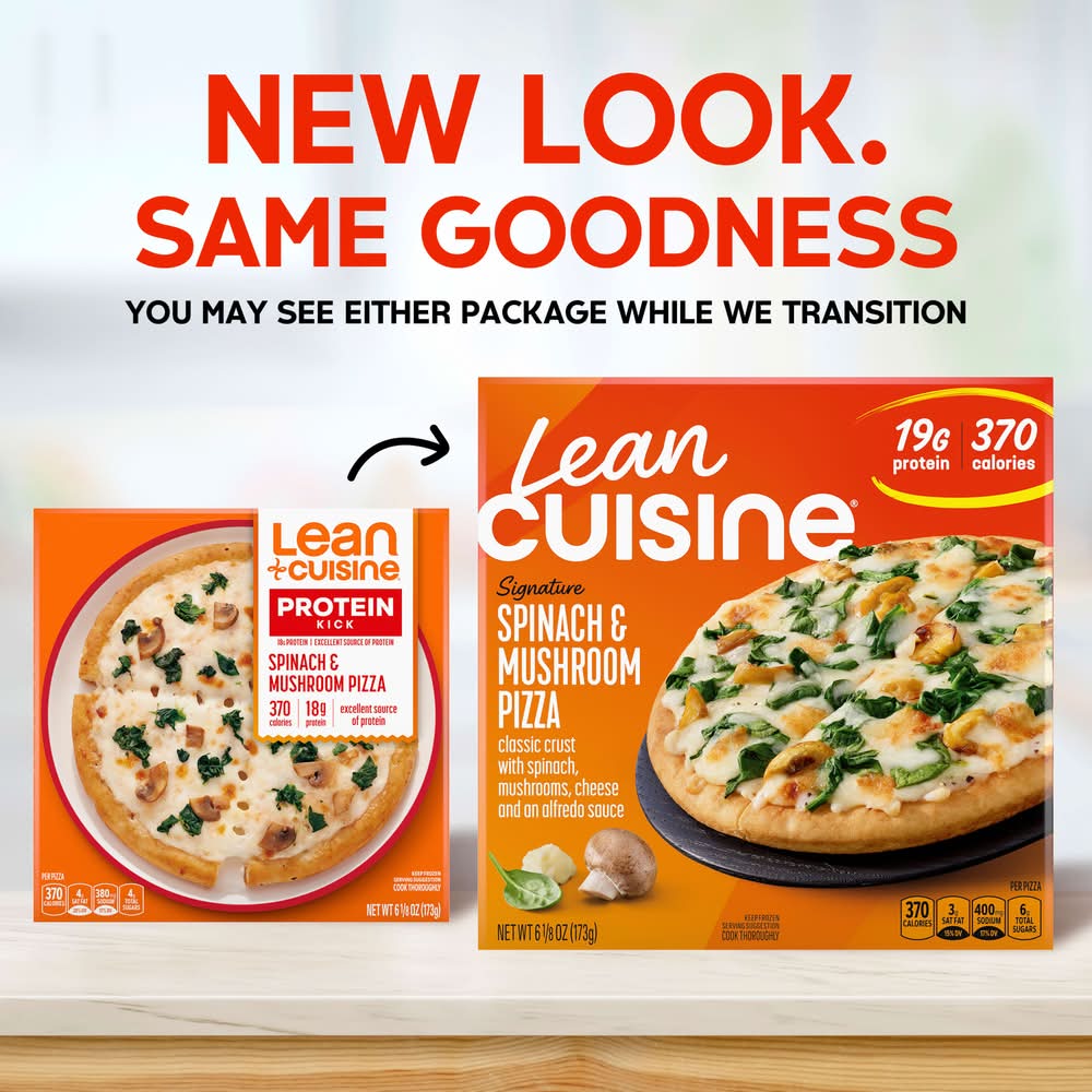 Progress never tasted this good -- Lean Cuisine Spinach & Mushroom Pizza is a quick, satisfying option for busy weeknights or effortless frozen lunches. Our personal pizza features a classic crust with spinach, mushrooms, cheese and an alfredo sauce for real comfort you can feel good about. Whenever you're searching for perfectly portioned meals that fit into your routine, think of Lean Cuisine. Whether you're stocking up on convenient personal meals or you're looking for diet food that fits your meal plan goals, Lean Cuisine makes it easy to stay on track. This individual pizza has 19g of protein, making it a great option you can count on to help hit your macros. Simply cook the personal pizza and enjoy — no prep, no cleanup, just smart eating made simple. Packaging: Reusable