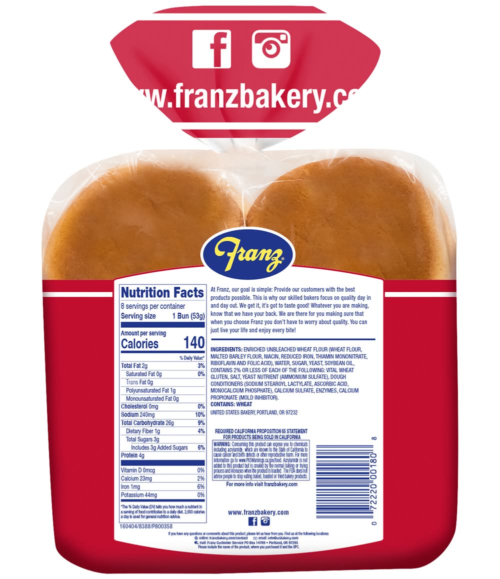 Franz Cluster Hamburger Buns United States Bakery, Portland, OR 97232