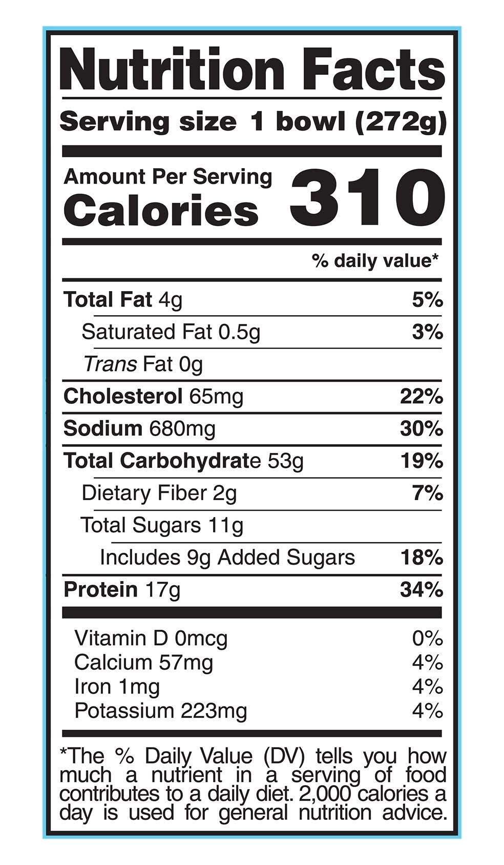 Directions: cook thoroughly. cooking instructions: 1. cut a 1 inch slit in the film. 2. microwave on high for 3 minutes and 30 seconds. 3. let stand for 1 minute. caution! bowl will be hot. 4. peel back film. stir thoroughly. 5. enjoy! caution: food and bowl may be hot! product must be cooked thoroughly to 165 degrees f for food safety and quality. do not allow product to thaw. do not eat without cooking. directions developed using 1100-watt microwave oven. appliances vary. adjust cooking times as needed.